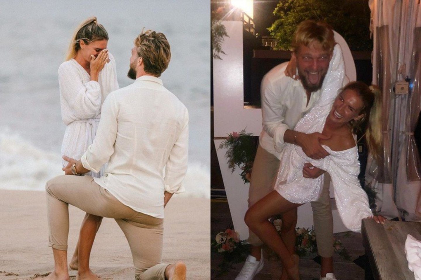 Kaip matoma iš fotografijų, jausmingos sužadėtuvės vyko paplūdimyje, Domantui užmovus žiedą būsima jaunoji vos nulaikė ašaras.