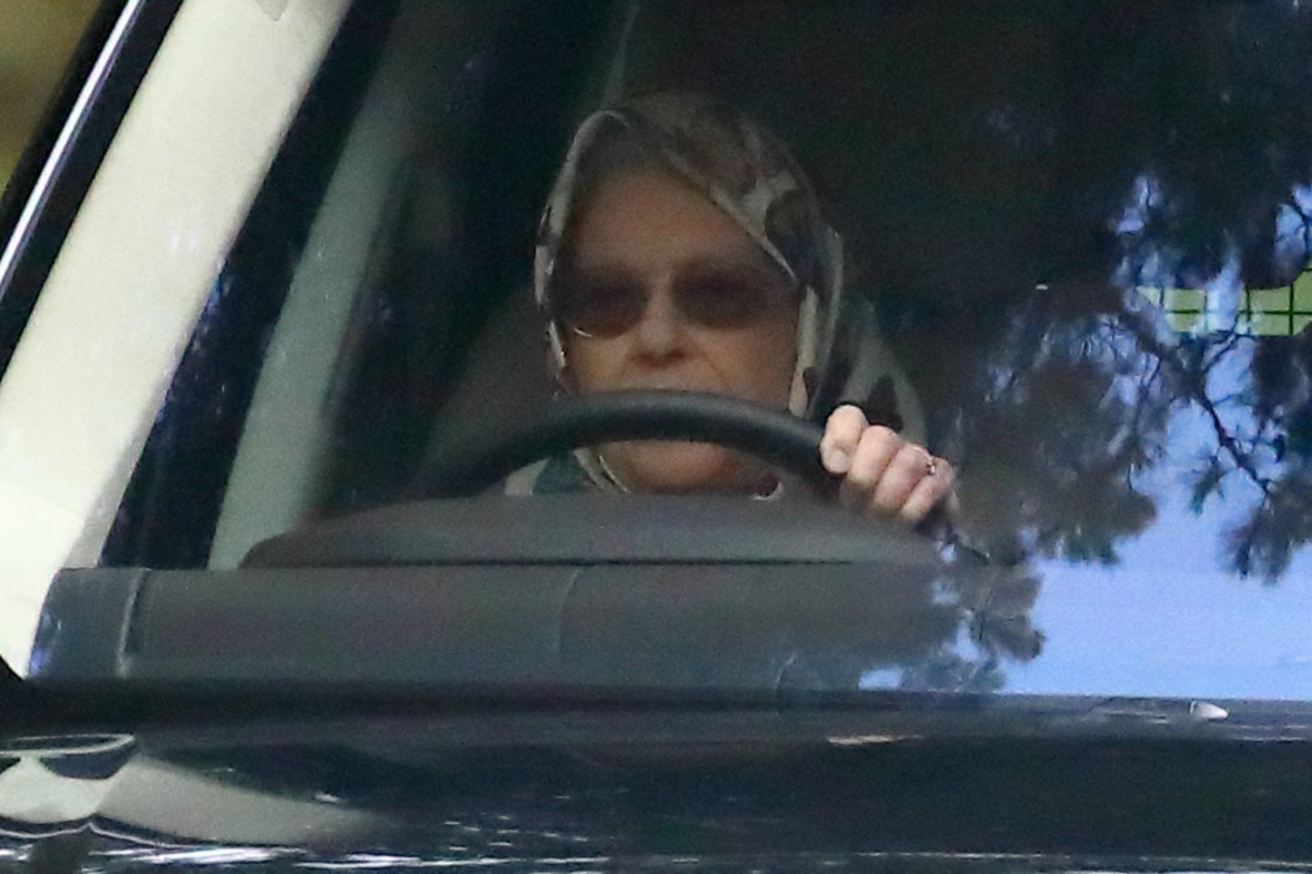 Britų žiniasklaidos paskelbtoje nuotraukoje 95-erių monarchė viena sėdi žaliame „Jaguar“. Ji dėvi akinius nuo saulės ir skarelę.