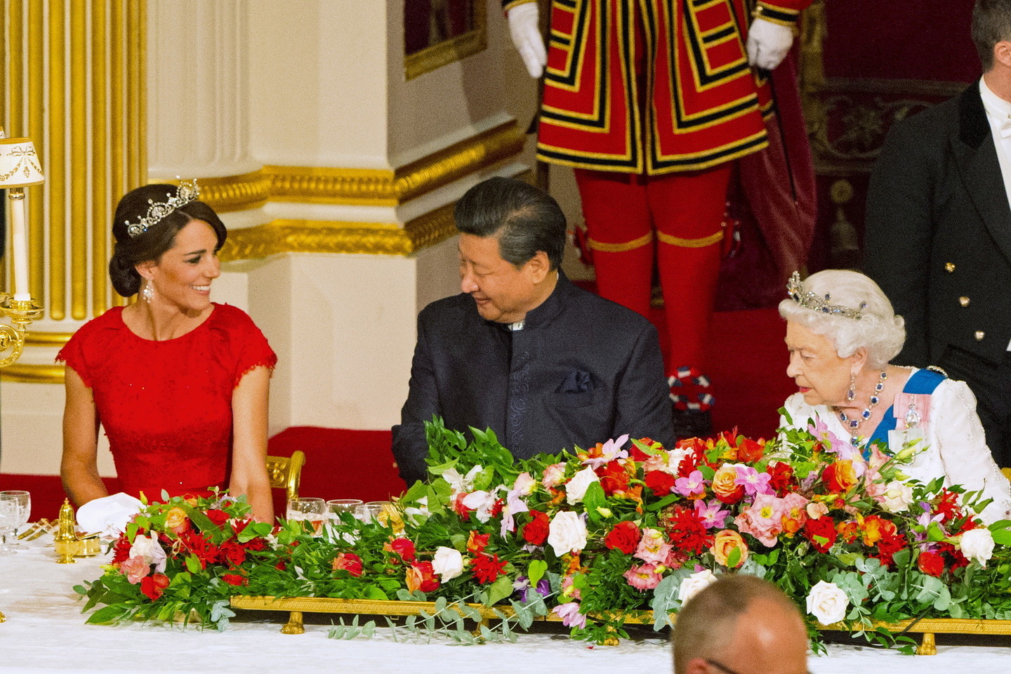 Per vakarienę daugelio svečių akys buvo nukreiptos į Kembridžo kunigaikštienę Catherine. Tai buvo pirmasis kartas, kai Catherine dalyvavo iškilmingoje vakarienėje rūmų pokylių salėje.