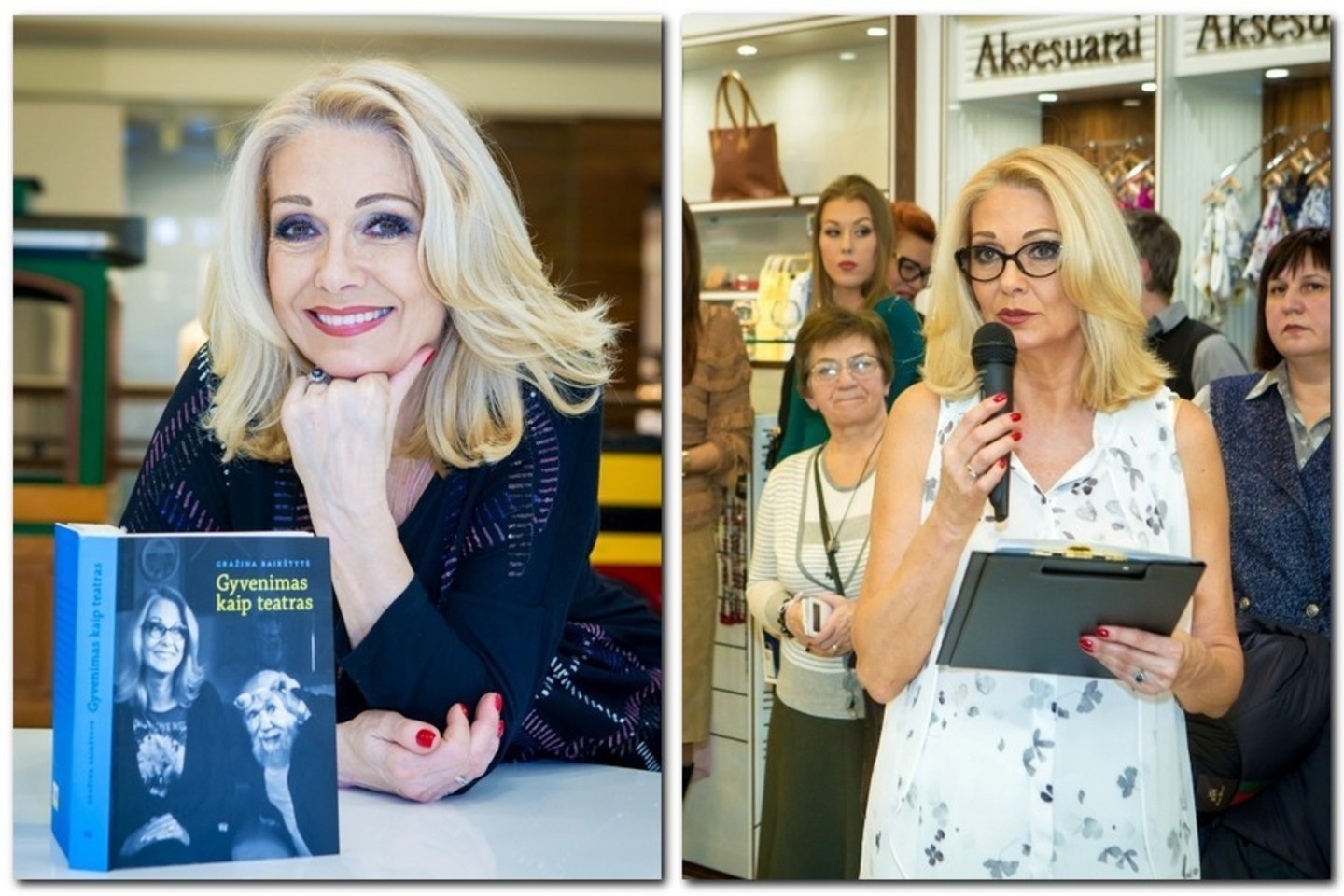 Vakaro vedėja tapo žinoma aktorė ir rašytoja Gražina Baikštytė. „Man labai malonu pristatyti būtent ispanišką mados prekinį ženklą, kadangi dievinu Ispaniją, ypač Barseloną, kasmet vykstu į šia šalį“, – sakė G. Baikštytė, ką tik pasirodžiusios pokalbių knygos „Gyvenimas kaip teatras“ autorė. Pasak aktorės ir rašytojos, šiuolaikiniame pasaulyje moters grožis neturi ribų. „Kiekviename gyvenimo etape esame savaip gražios“, – įsitikinusi žinoma moteris.