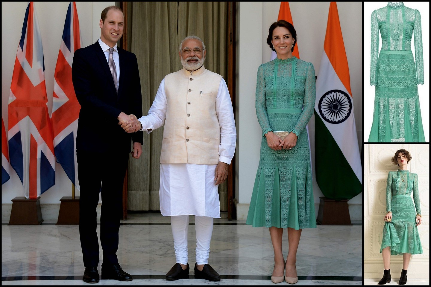 Susitikimui su politiku Catherine pasirinko žalsvą nėriniais puoštą „Temperley London“ suknelę. Britų žiniasklaida suskubo paskaičiuoti, kad ši suknelė kainuoja 795 svarus sterlingų (993 eurus).