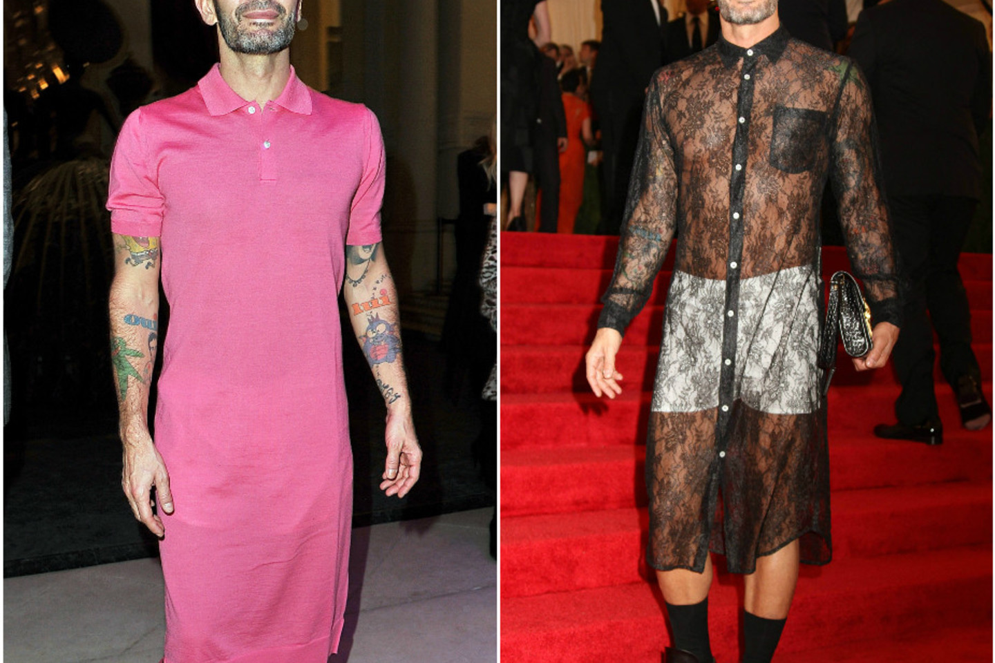 Kaip tik tokį apdarą M.Jacobsas pasirinko 2012 m. „Met Gala“. Tais pačiais metais per Paryžiaus mados savaitę dizaineris apsirengė ryškią rausvą suknelę. Beje, abi suknelės – ne M.Jacobso kūriniai, o jo kolegų japonų iš „Comme des Garcons“.