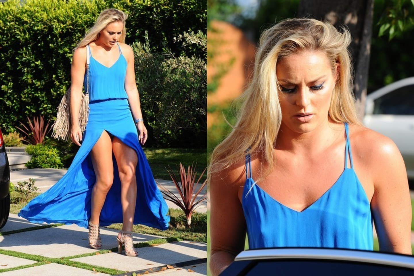 Viliojo ir gilus suknelės skeltukas, kuris atidengė Lindsey raumeningas ir įdegusias kojas. Tiesa, L.Vonn jautėsi lyg būdama ne savame kailyje – atrodė susikausčiusi ir nelaiminga.