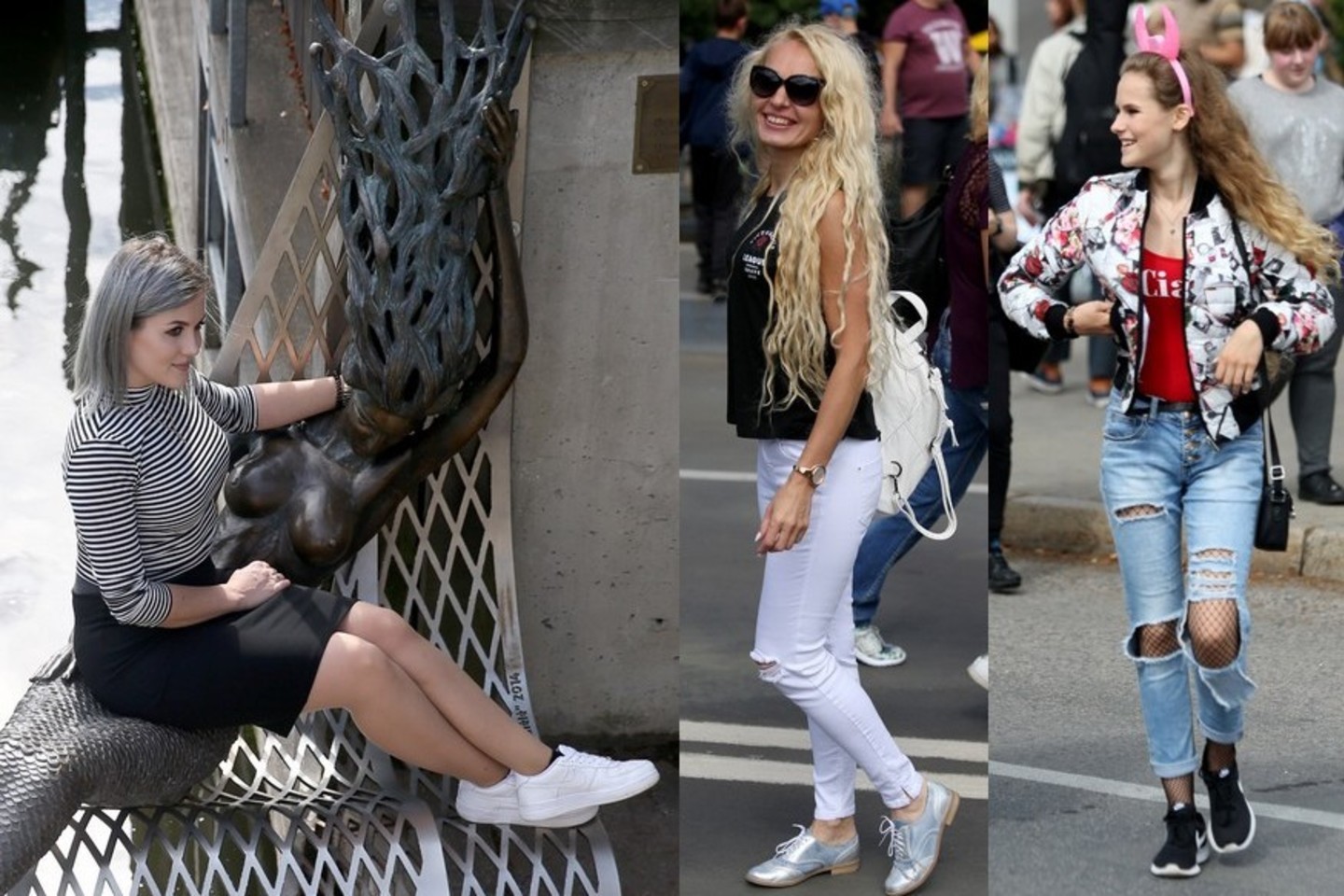 Šventės svečių stiliaus akcentu tapo ir dvi pagrindinės šios vasaros tendencijos: plėšyti džinsai ir tinklinės pedkelnės.