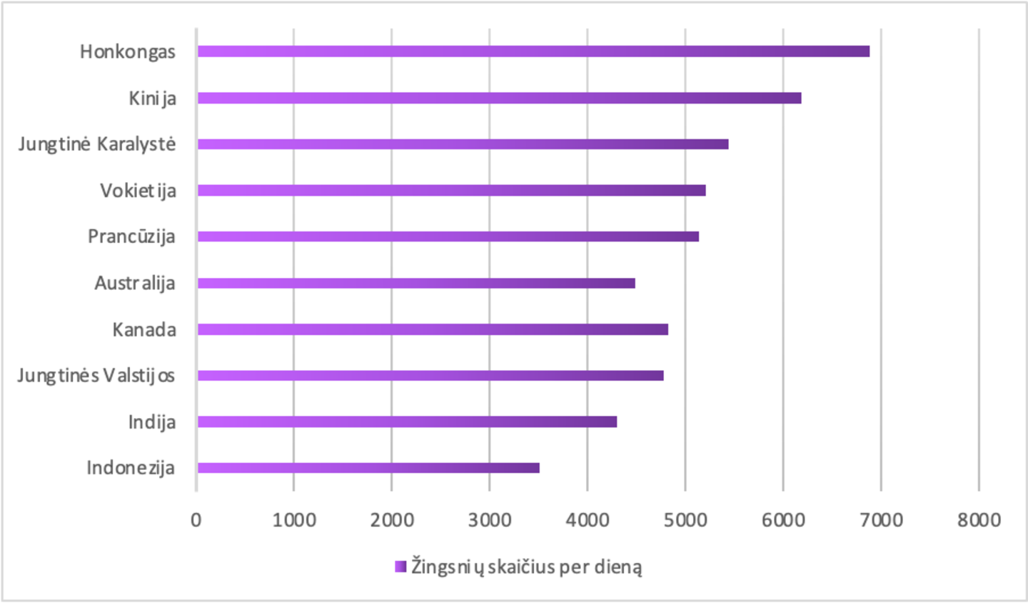 Nors dauguma žino, kad judėjimas yra būtina sveikatos palaikymo sąlyga, tačiau Lietuvos statistikos departamento duomenimis tik 48 proc. šalies gyventojų per dieną eina 30 minučių arba ilgiau. Tad, kas lemia mūsų žingsniavimo įpročius ir kiek žingsnių per dieną nueina skirtingi žmonės?