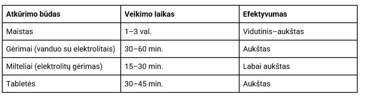Kaip greitai veikia skirtingi elektrolitų atkūrimo būdai?