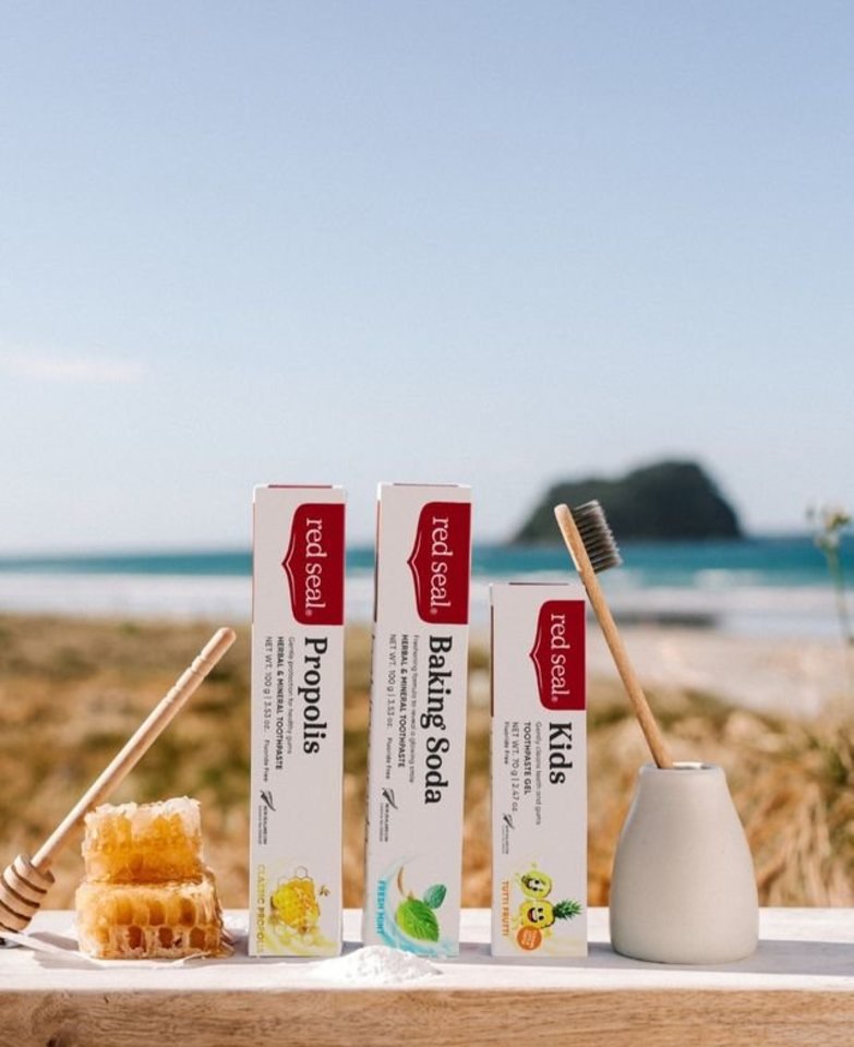 „Ecosmile“ bendradarbiauja su išskirtine natūralių dantų pastų gamintoja „Red Seal“ iš Naujosios Zelandijos. Šio prekių ženklo pastų sudėtyje yra tik natūralūs ingredientai iš gamtos, tokie kaip soda, propolis, jūros druska, manukos aliejus ir pan. Jose nėra SLS, fluoro, parabenų ar kitų sinteninių medžiagų. Galite rinktis iš plataus asortimento: nuo natūraliai balinančių, tokių kaip „Strong Mint“, „Baking soda“ ar „Whitening“, dantenas saugančių „Propolis“ ar „Herbal“ iki pastos vaikams „Kids“, kuri saugi net jos netyčia prarijus.