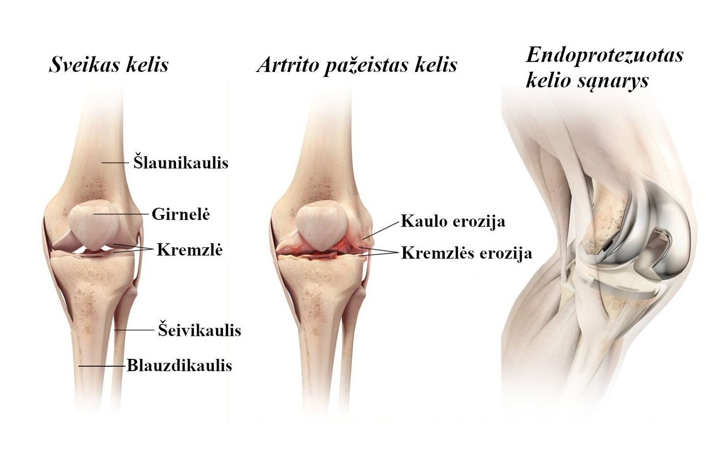 Kai konservatyvus gydymas – medikamentai, fizioterapija ir kineziterapija – nepadeda, efektyviu sprendimu tampa kelio sąnario keitimo operacija. Lietuvoje kasmet atliekama apie 4 tūkst. tokių procedūrų, o jų skaičius palaipsniui didėja. Dauguma pacientų po sėkmingos reabilitacijos atgauna judėjimo galimybes, atsikrato skausmo ir sugrįžta į aktyvų gyvenimą.