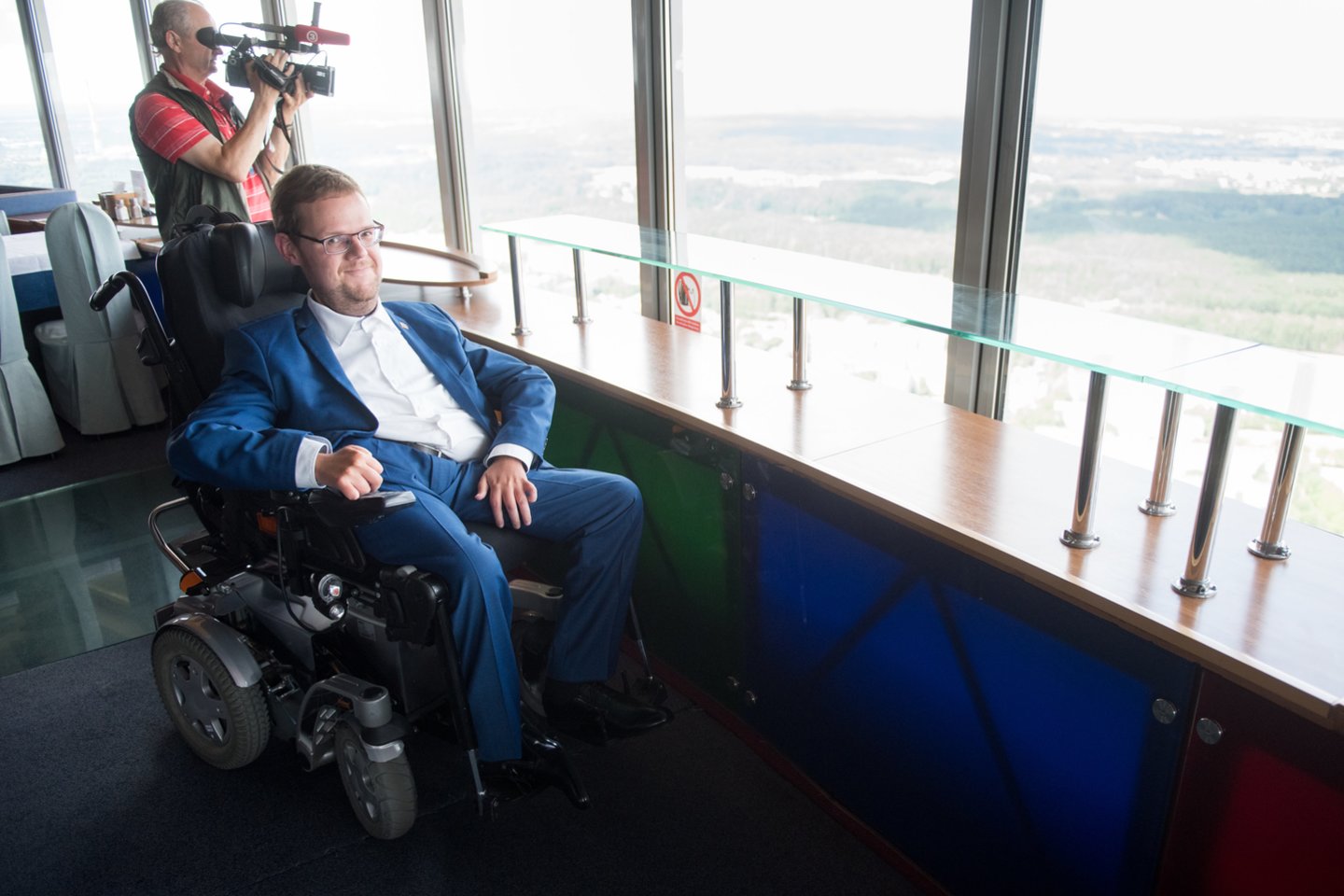 Vienas pirmųjų, pasinaudojusių proga išgerti kavos 165 metrų aukštyje esančiame restorane „Paukščių takas“ ir pasigėrėti kvapą gniaužiančiais vaizdais, buvo Seimo narys, Neįgaliųjų teisių komisijos pirmininkas Justas Džiugelis.