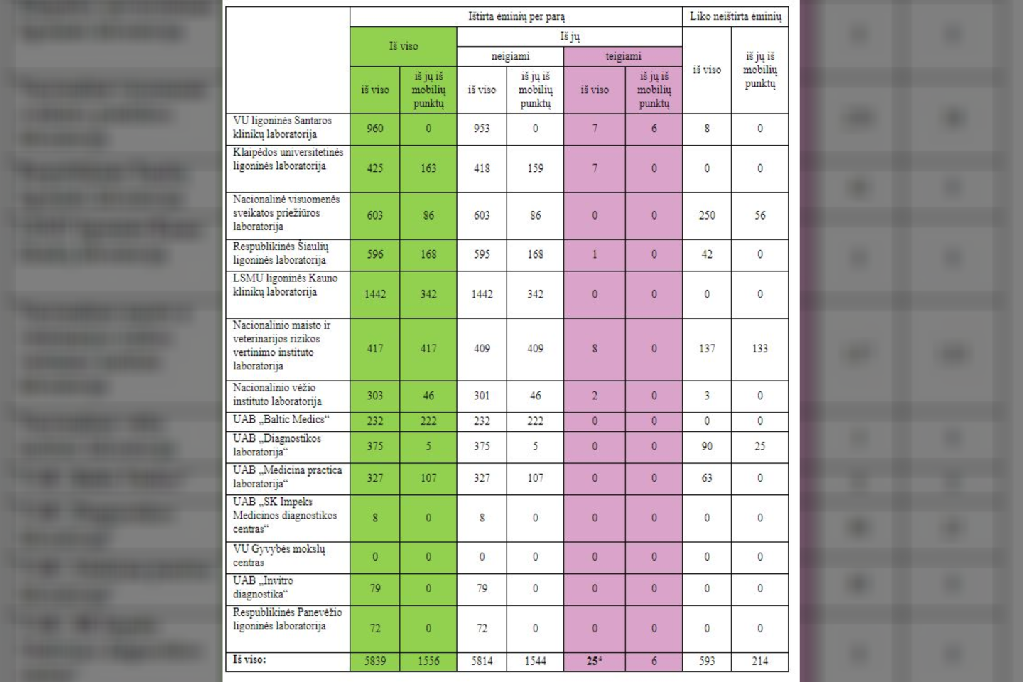 Per praėjusią parą laboratorijose ištirti 5839 mėginiai. Iš viso jau ištirti 264882 ėminiai.
