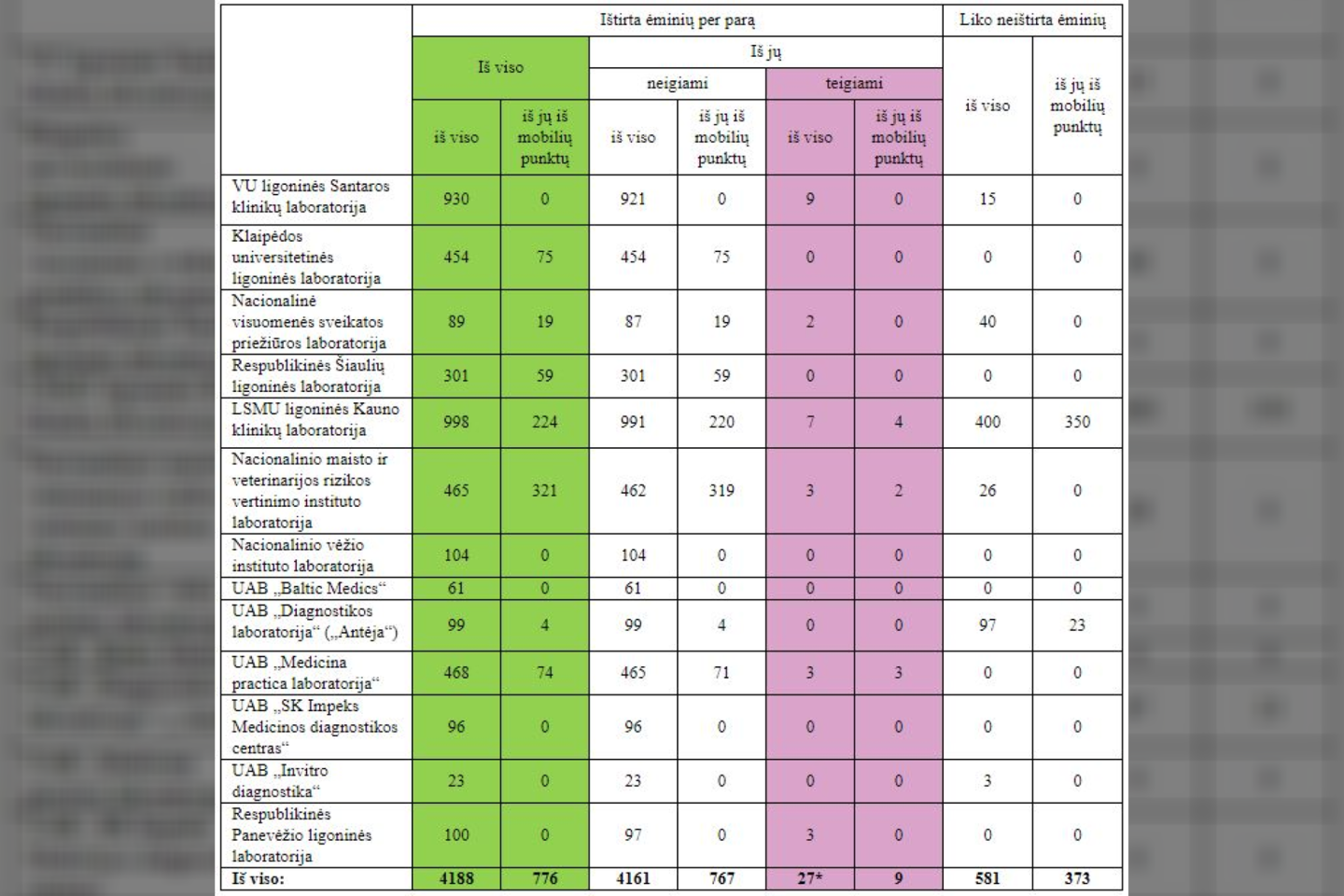 Per praėjusią parą laboratorijose ištirti 4188 ėminiai, iš viso iki šiol ištirta 584641 ėminių.