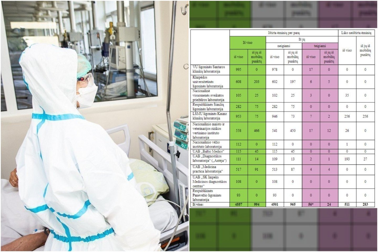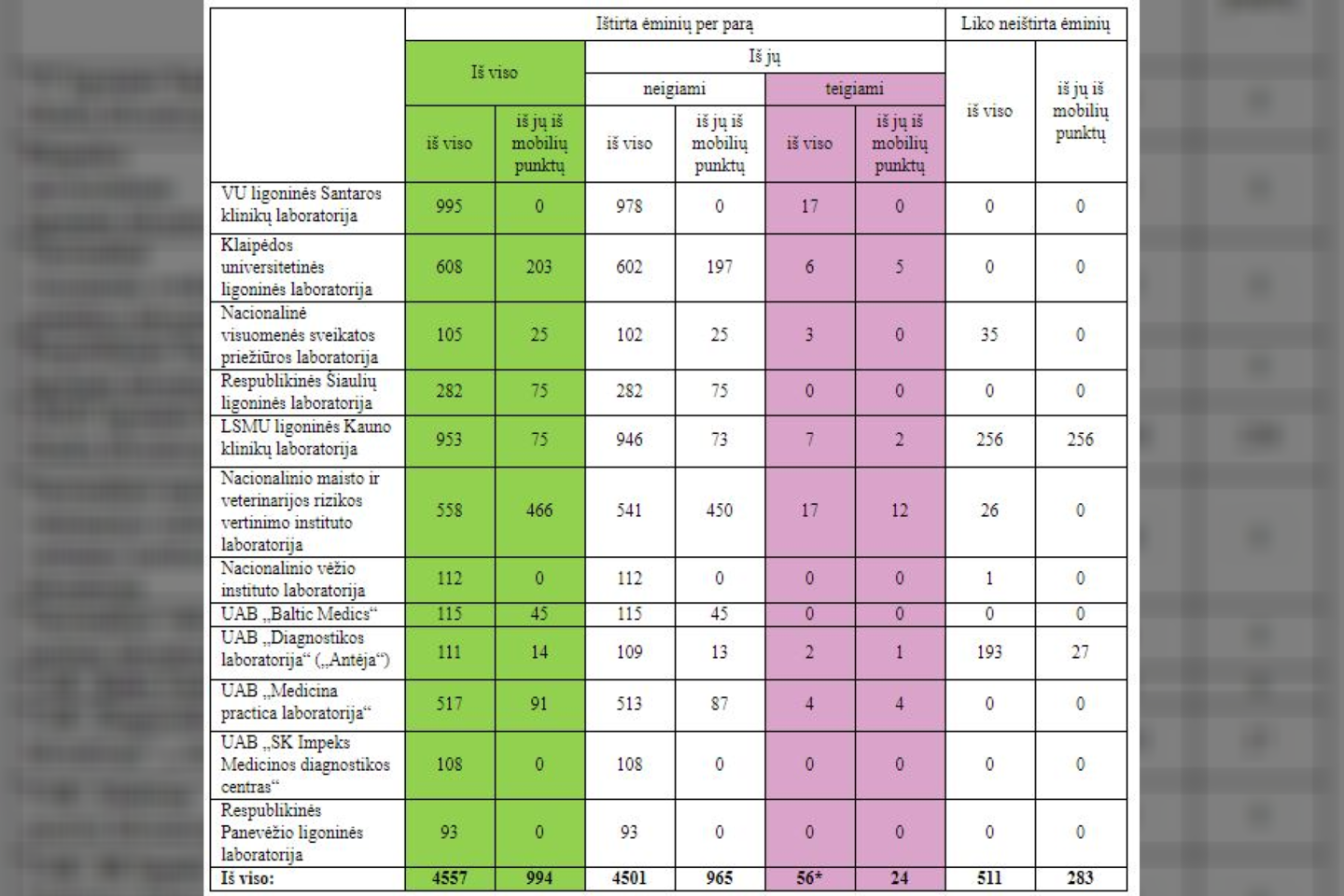 Per praėjusią parą ištirti 4557 ėminiai. Iš viso iki šiol ištirti 613324 ėminiai.