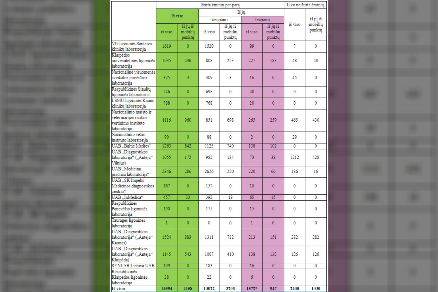 Nuo birželio 1 dienos užfiksuota 417 įvežtinių atvejų. Per trečiadienį ištirti 14 594 ėminiai. Iš viso ištirta 1 064 817 ėminiai.