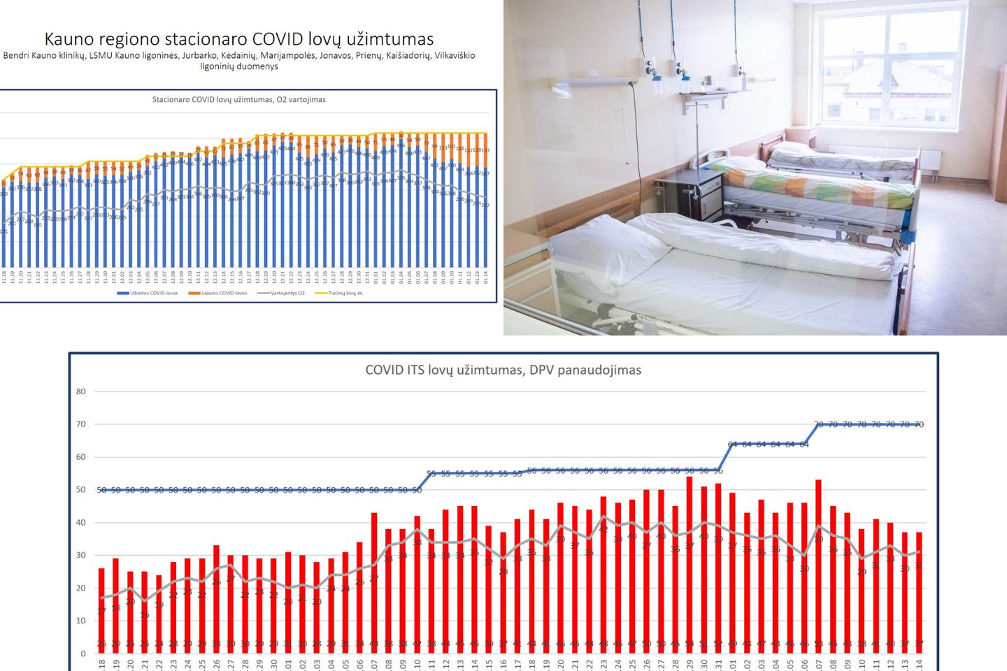 Nuo rytojaus Kėdainių ligoninėje nuo 70 terapinio profilio covid lovų skaičius mažinamas iki 45. Taip pat mažėja reanimacinio ir intensyviosios terapijos covid lovų skaičius: Kauno klinikose – nuo 31 iki 28 lovų, o LSMU Kauno ligoninėje – nuo 22 iki 18.