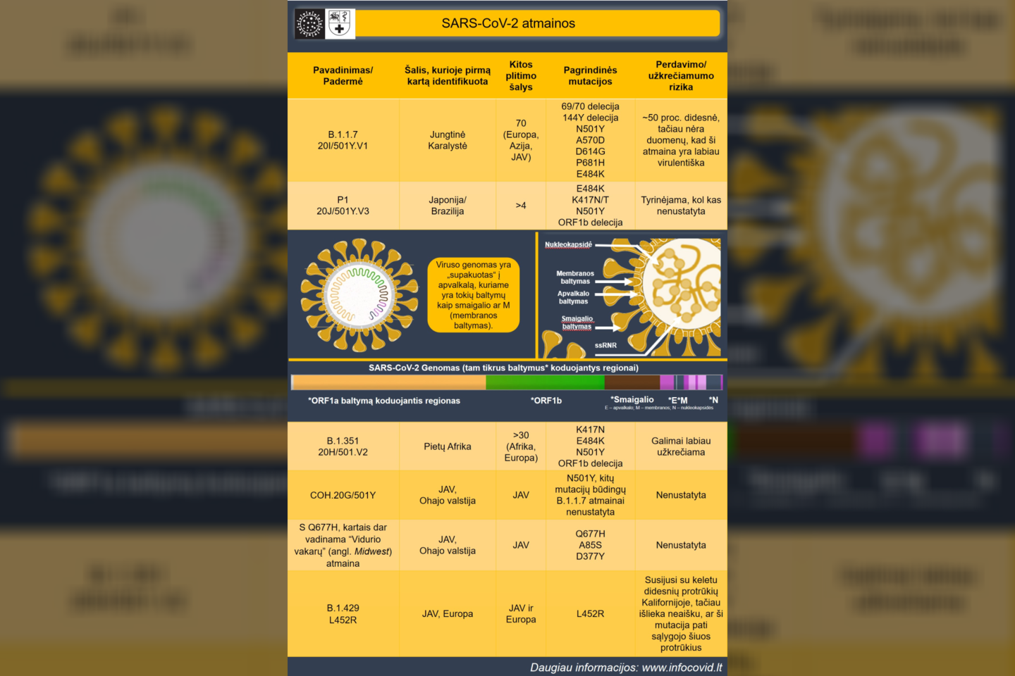 Pasak Daniel Naumovo, Lietuvoje dominuojančios B.1.1.280 ir B.1.177.LTU atmainos nėra labai ypatingos – tai reiškia, kad jos susirūpinimą keliančių mutacijų neturi, ko nepasakytum apie angliškąją, braziliškąją ar Pietų Afrikos Respublikos.
