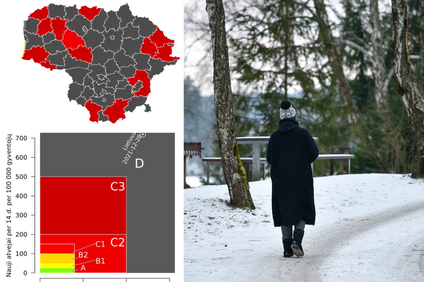 Pagal pastarąjį santykinį rodiklį sudarytame Lietuvos spalvinių zonų žemėlapyje trečiadienį 14-os savivaldybių teritorijos – raudonos, likusių 46-ių – juodos. Per paskutines 7 dienas šalyje atlikta 90 791 diagnostinis (PGR + AgT) tyrimas, liga patvirtinta 11,9 proc. ištirtųjų.