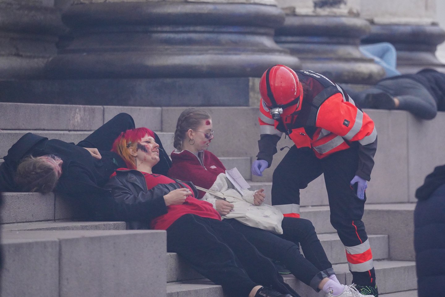 Pavakare į Soborą pataikius imitacinei raketai, iš bažnyčios pasipylė šimtai „sužeistųjų“. Nukentėjusiųjų klyksmai ir pagalbos šauksmai aidėjo per visą Laisvės alėją, tačiau pagalbos teko laukti ilgiau nei tikėtasi.