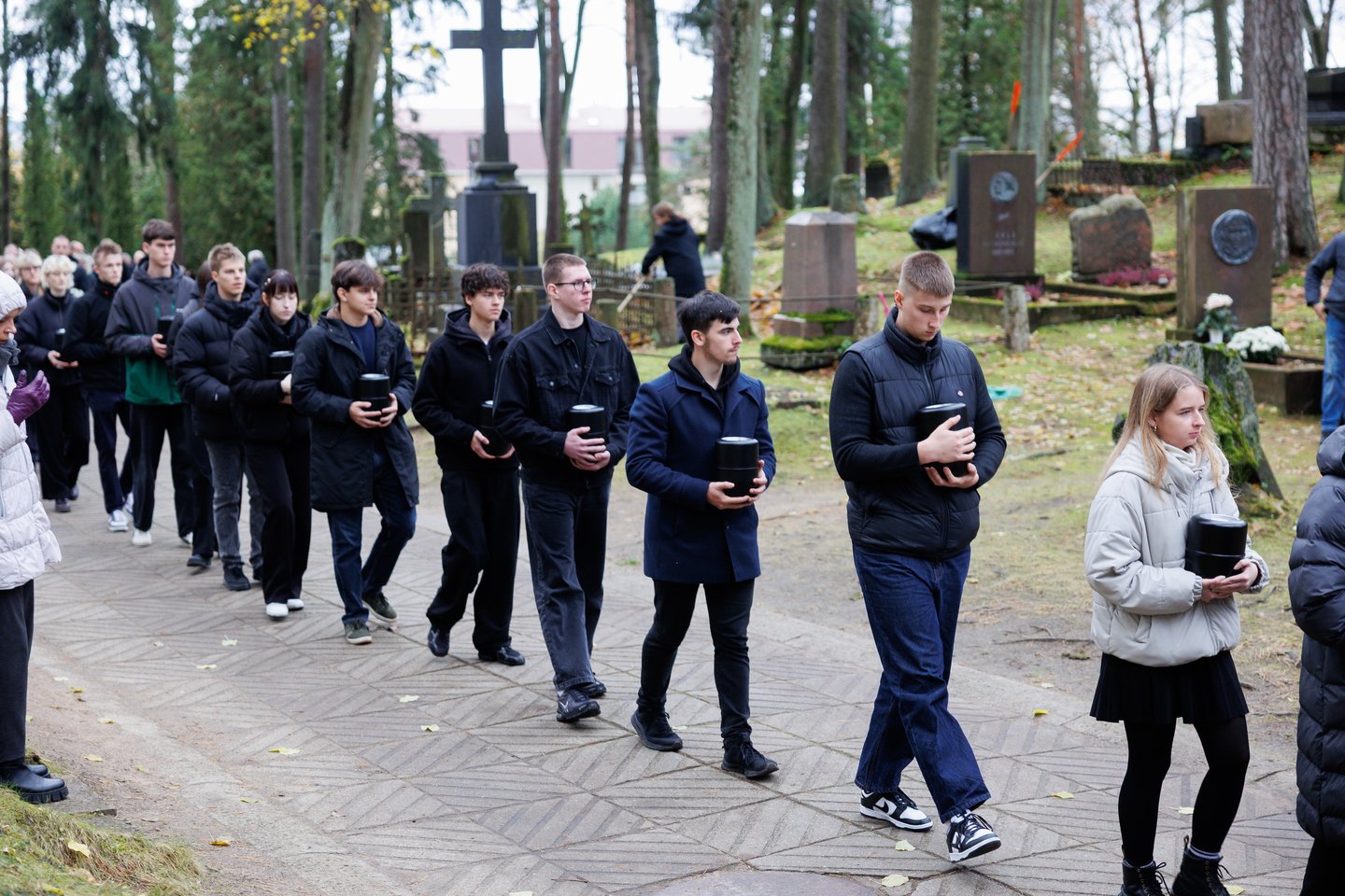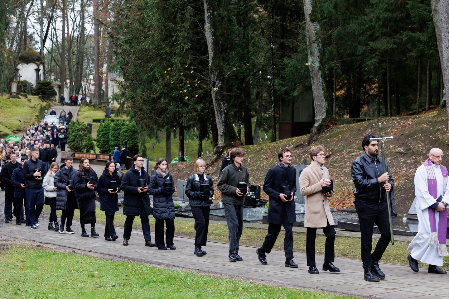 Trečiadienį Vilniaus universiteto (VU) Medicinos fakultetas surengė iškilmingą ir itin reikšmingą ceremoniją – Antakalnio kapinėse pirmą kartą palaidoti po mirties savo kūnus medicinos mokslui paaukojusių 27 žmonių palaikai. Jautrias akimirkas įamžino Lrytas fotografas Tomas Bauras.