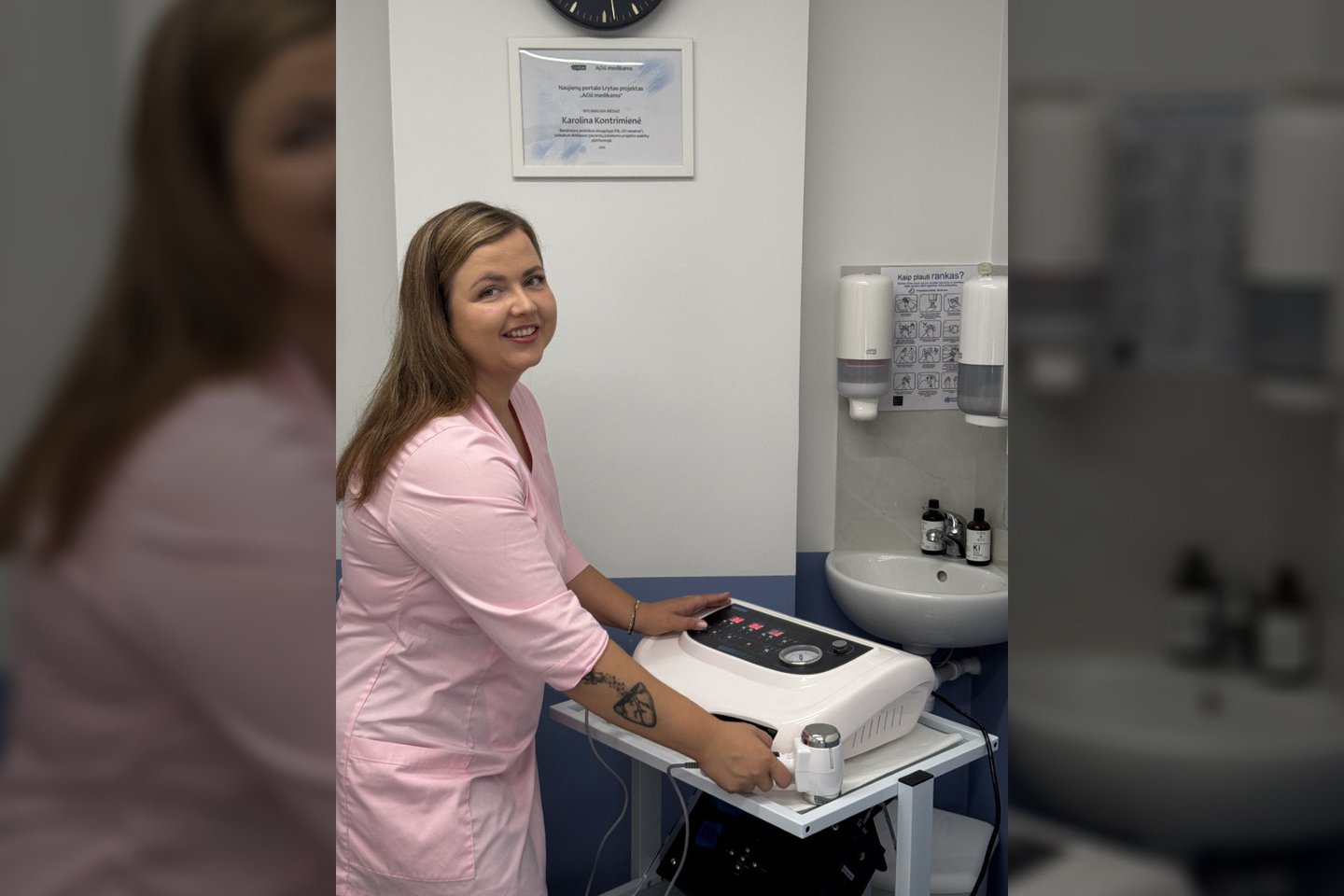 Su K.Kontrimiene kalbuosi privačiame slaugytojos kabinete, kuris įsikūręs pačioje Klaipėdos širdyje. 10 kvadratinių metrų patalpoje telpa ir procedūrinis stalas, po ranka visi medikei būtini reikmenys. Moteris juokiasi, kad 5 kartus reikėjo viską perstumdyti, kol patogiai išsidėliojo.