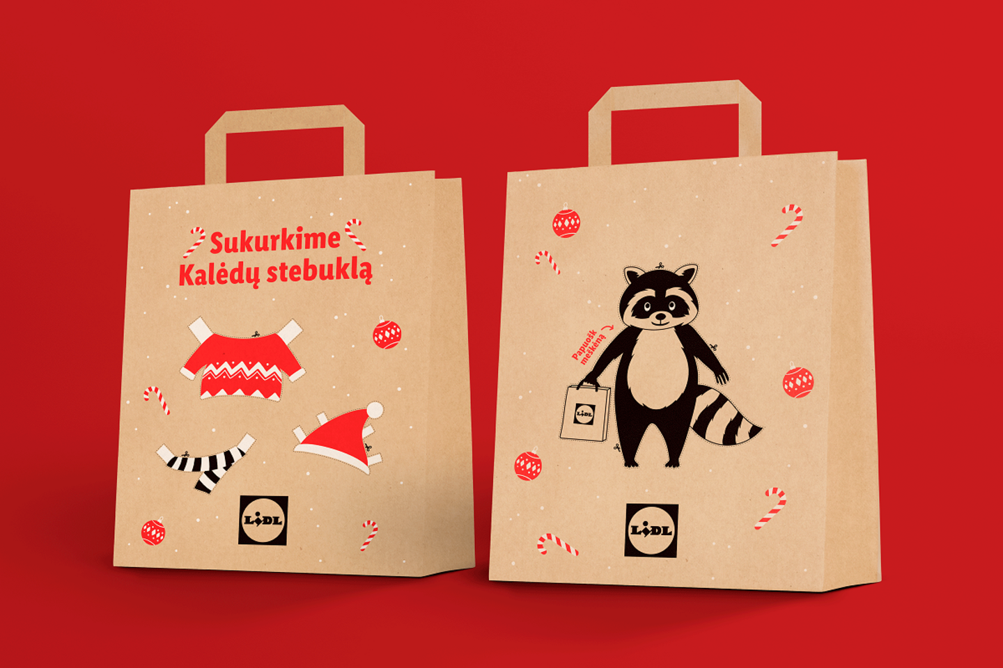 „Meškėnas yra pagrindinis „Lidl“ Kalėdų kampanijos veikėjas – jo atvaizdas yra ir ant atnaujintų popierinių pirkinių maišelių. Taip šis meškėnas turi galimybę atsidurti kiekvienuose namuose ir toliau kurti Kalėdų stebuklą: ant maišelio yra kirpimo linijos, kurios padės išsikirpti žvėrelį ir jį papuošti kitoje maišelio pusėje esančiais elementais. Meškėnas namuose gali tapti puikiu vaikų ar visos šeimos žaidimų draugu – galbūt kažkas norės pasidaryti ir daugiau drabužėlių bei jį originaliai papuošti“, – teigia A. Bubnelis.
