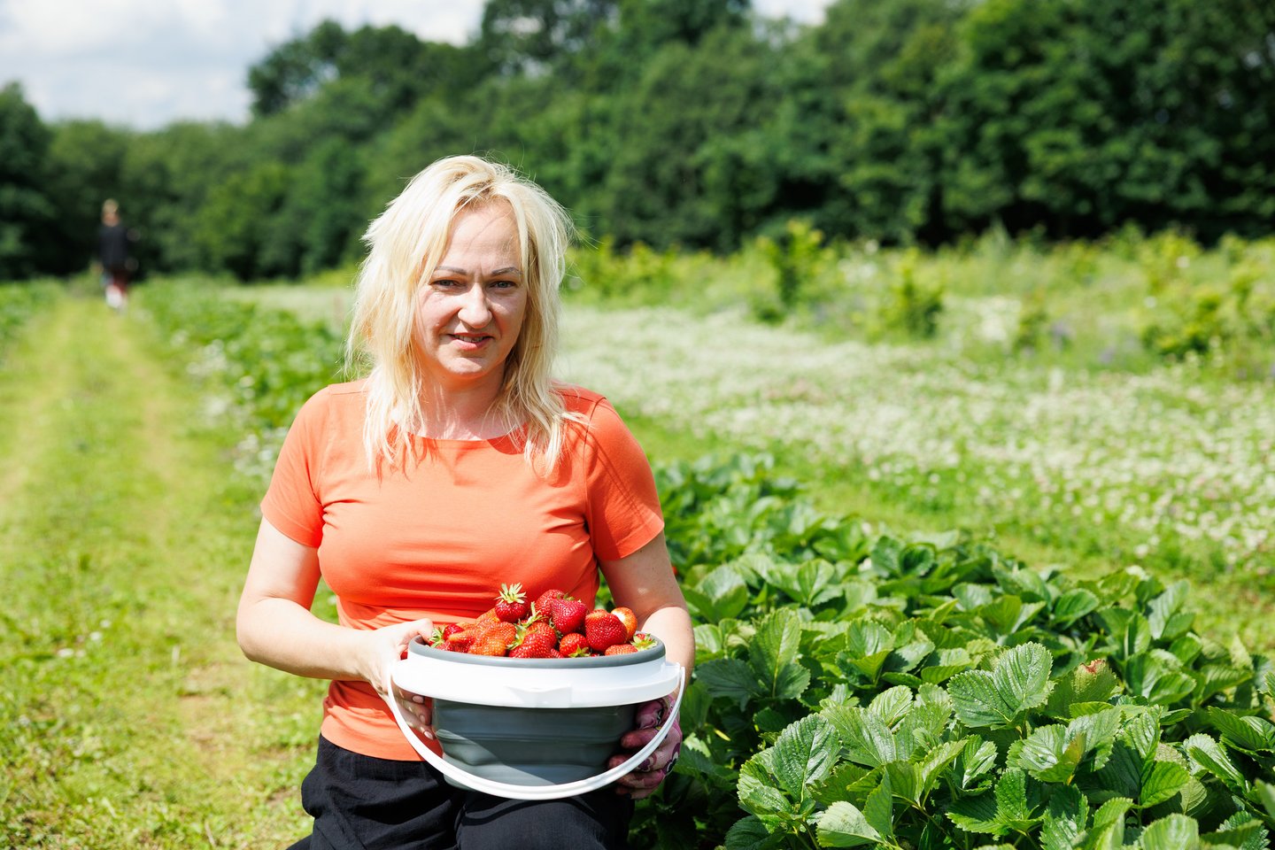 „Jau gal trys metai važiuoju į šitą ūkį. Kai prasideda sezonas ir uogų būna nedaug, perku ir iš turgelio, bet įprastai skinuosi pati – ne tik braškes, bet ir šilauoges.