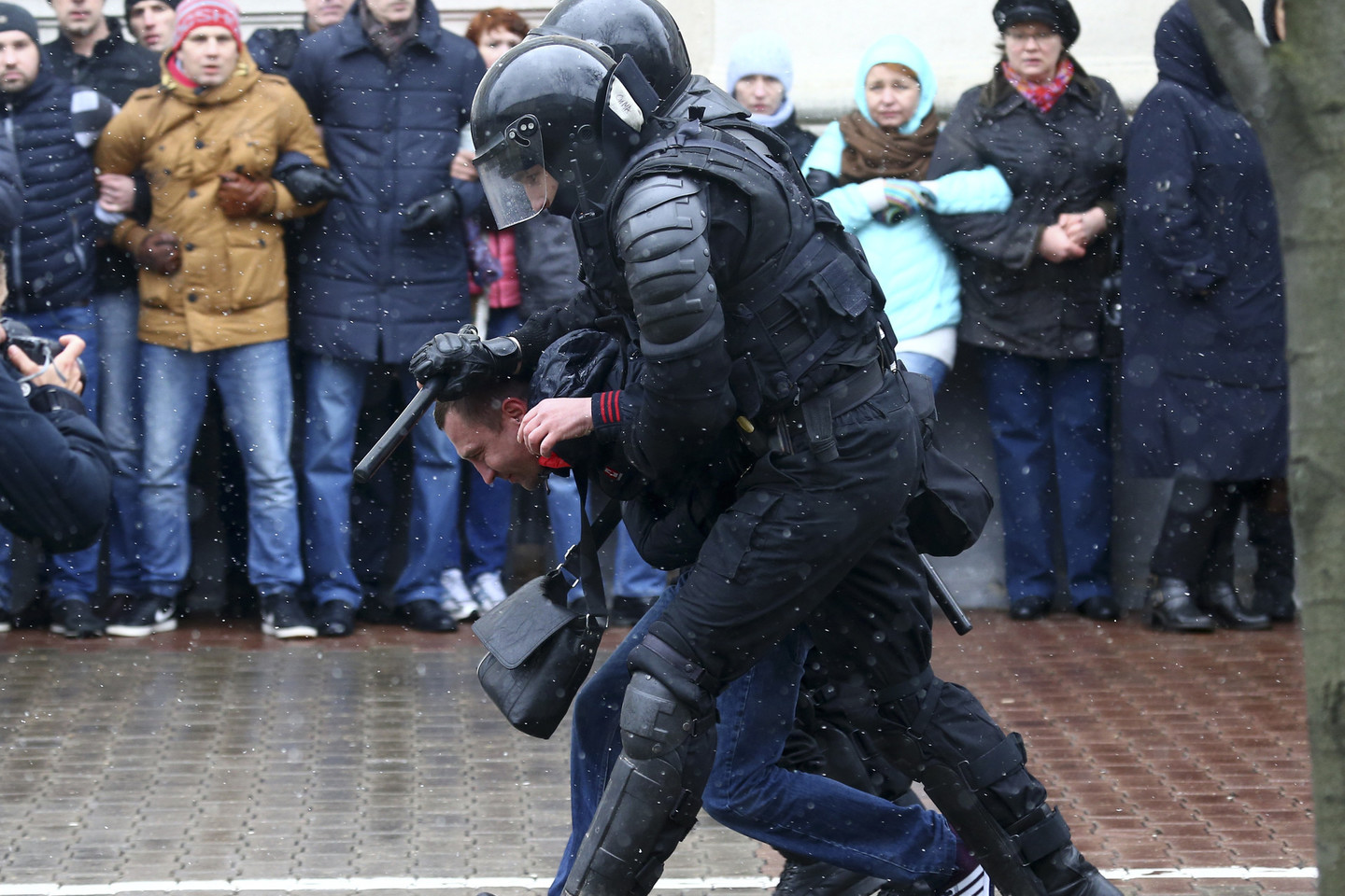 Na, bet vienu klausimu Baltarusija su Rusija sutaria puikiai – bet kokį gyventojų nepasitenkinimą valdžios politika reikia slopinti vos tik šis pasireiškia. Tad tarsi lenktyniaudami su Rusijos omonininkais, ką tik išvaikiusiais prieš korupciją Maskvoje protestuojančius žmones, „terminatorių“ uniformas vilkintys A.Lukašenkos „tvarkos sergėtojai“ vakar, kovo 26 dieną, be skrupulų vilko link talpių „specialiosios paskirties“ furgonų su MAZ logotipu ir grubiai grūdo į vidų atėjusius į Spalio aikštę Minske solidarizuotis su išvakarėse suimtais žmonėmis, kurie protestavo prieš valdžios politiką.