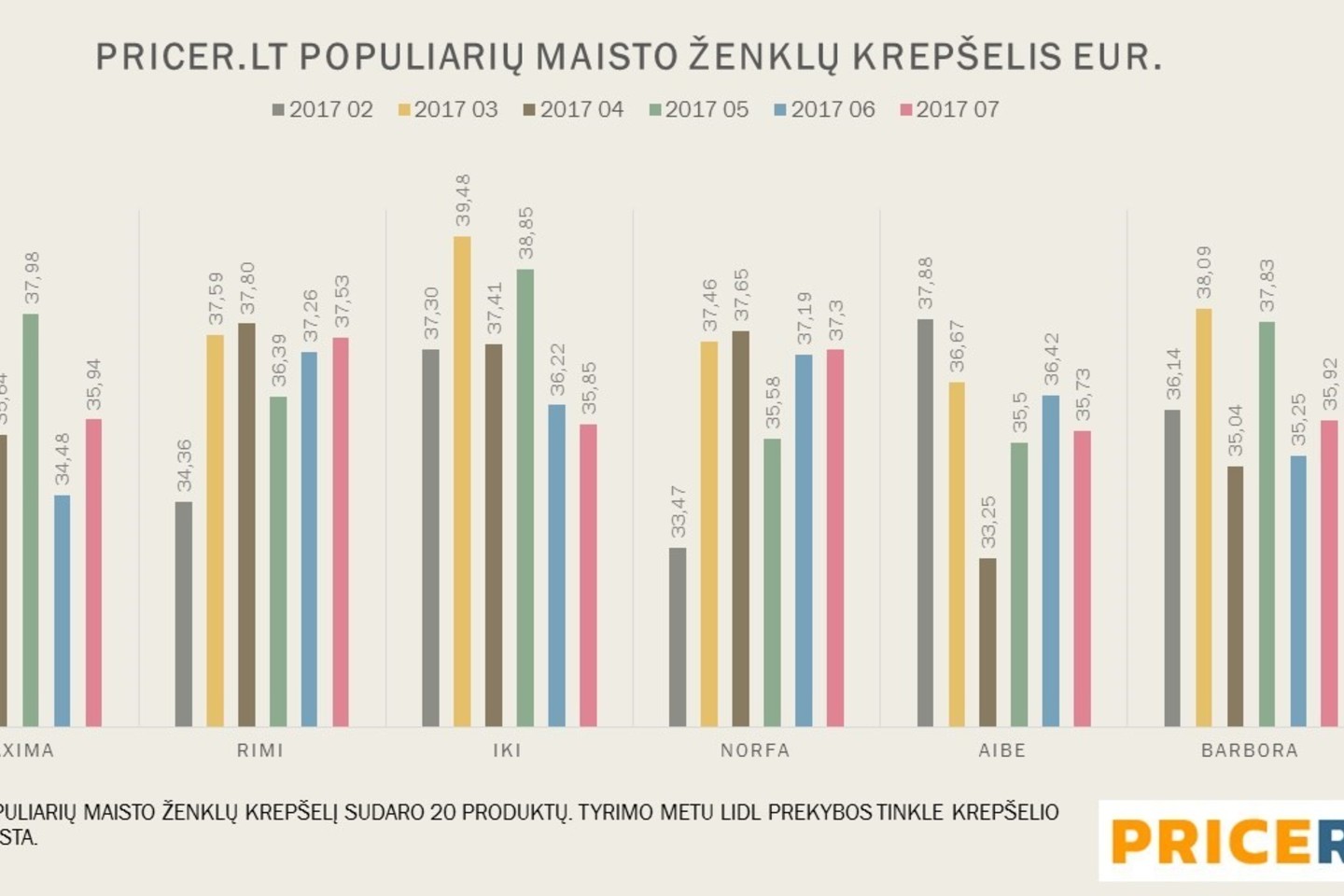 Palyginus sausio ir liepos mėnesiais užfiksuotų pigiausių maisto produktų kainas matoma, kad tik dvi parduotuvės nuo metų pradžios nekėlė pigiausių maisto produktų kainų, o jas netgi nuleido, tai – parduotuvė „Lidl“ (-1,49 %) bei parduotuvė „Barbora“ (-4,81 %). Nuo sausio daugiausia pigiausi produktai pabrango parduotuvėje „Iki“ (+17,52 %) ir parduotuvėje „Aibė“ (+15,48 %).
