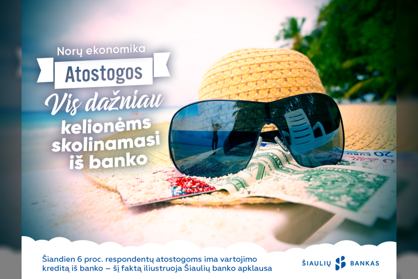 Šiaulių banko iniciatyva visuomenės nuomonės ir rinkų tyrimo centro „Vilmorus“ atlikta reprezentatyvi gyventojų apklausa parodė, kad daugelis gyventojų atostogoms stengiasi susitaupyti. Tačiau vis dažniau lietuviai gyventojų svajonių atostogoms finansuoti renkasi ir vartojimo kreditą ar lizingo paslaugą. Taip tolimas šalis lanko ir savo svajones įgyvendina 6 proc. apklausos dalyvių.