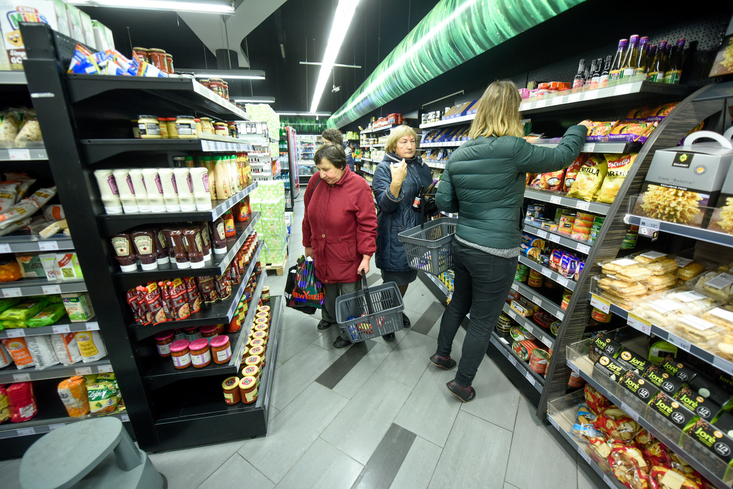 Ir iš tiesų salės darbuotojai nuolat pildė ištuštėjusias lentynas. O pirkėjai šlavė viską: saldumynus, riešutus, higienos reikmenis, alkoholį, bakalėjos gaminius, maistą augintiniams... Net ir lenkų turistų grupė ėjo pilnomis rankomis.