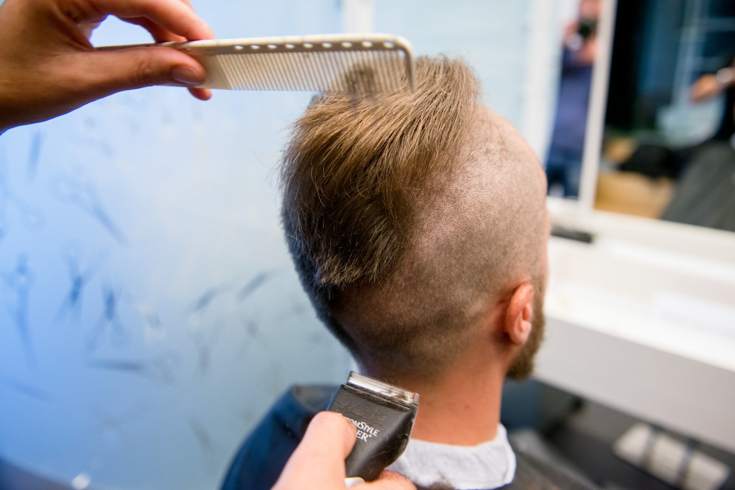Formuojant šukuosenas ir barzdas, prireikus gali būti atliekamas ir skutimas.