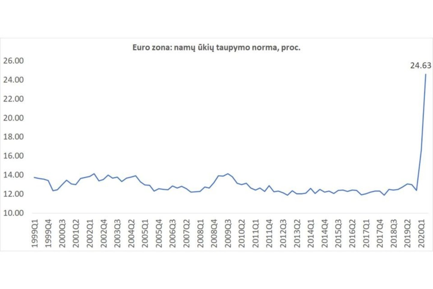 „Naujausi Eurostat duomenys rodo, kad antrąjį 2020 m. ketvirtį euro zonos namų ūkių taupymo norma pakilo iki istorinio maksimumo ir pasiekė 24,6 proc. Iš esmės tai reiškia, kad antrą šių metų ketvirtį euro zonos vartotojai taupymui atidėdavo 24,6 proc. pajamų – dvigubai daugiau nei prieš Covid-19 viruso protrūkį (2019 m. ketvirtą ketvirtį euro zonos namų ūkių taupymo norma siekė 12,4 proc.)“, – teigė A.Izgorodinas.
