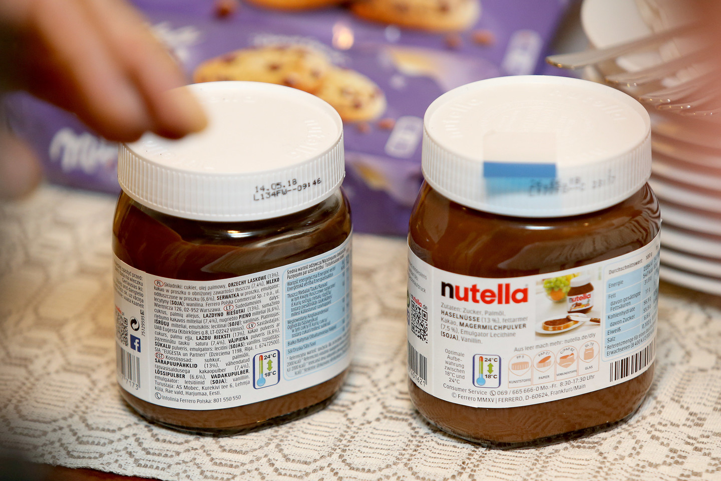 Skiriasi ir „Nutella“ su lazdynų riešutais, Vokietijoje parduodamoje prekėje yra 7,5 proc. nugriebto pieno miltelių, o Lietuvoje – 6,6 proc. nugriebto pieno ir išrūgų miltelių. O štai tirpiojoje kavoje „Nestle Nescafe gold“, kuri yra parduodama Vokietijoje, kofeino kiekis reikšmingai skiriasi nuo parduodamos Lietuvoje.
