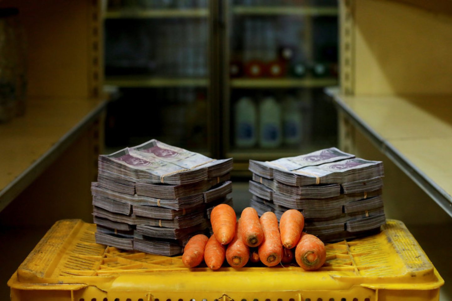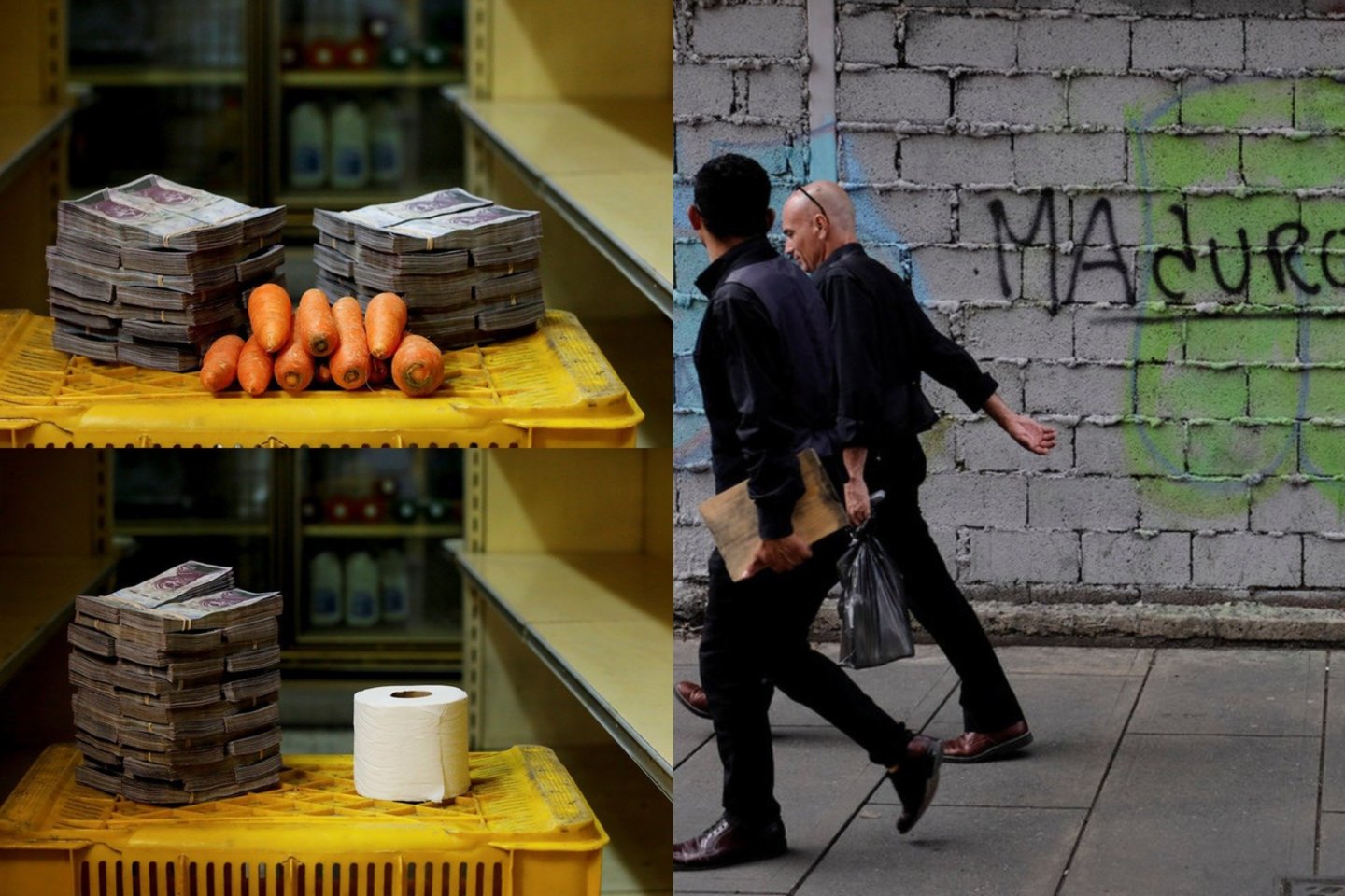 Hiperinfliacijos pasekmė ta, kad, norint nusipirkti pagrindinių produktų, reikia pakloti krūvas banknotų. „Reuters“ nuotraukose atsispindi krizės apimtos šalies kasdienės realijos.
