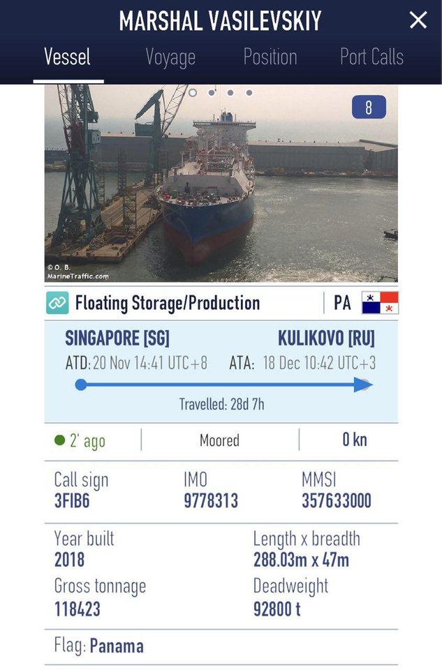 „Maršalas Vasilevskis“ atplaukė į Baltijos jūrą iš Ulsano uosto Pietų Korėjoje gruodžio mėnesį, rašo kgd.ru.