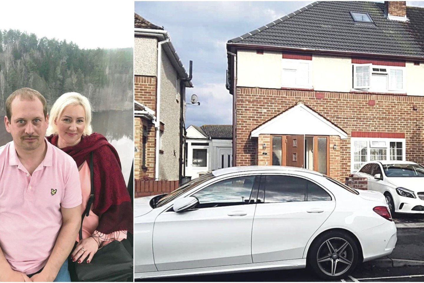 Jaukus britiško stiliaus gerai įrengtas dviejų aukštų namas su mansarda Vakarų Londone, du balti naujutėliai automobiliai „Mercedes-Benz“ garaže.