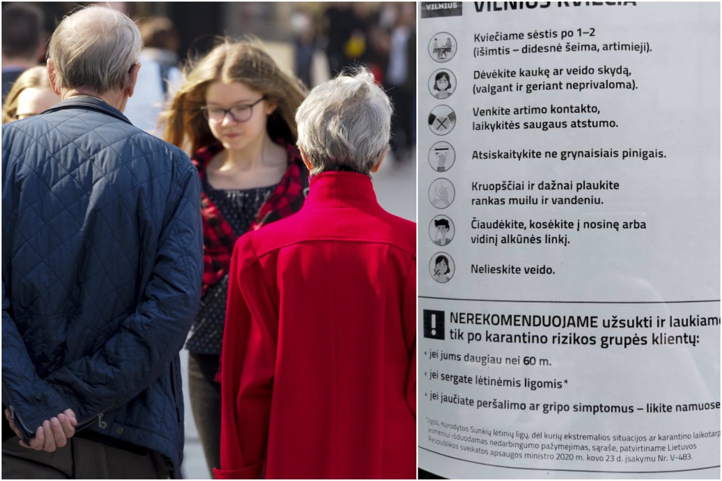 Vis dėlto ji pridūrė nerekomenduojanti senjorams lankytis kavinėse ir apskritai nesirinkti paslaugų, kurias galima gauti nedėvint kaukės.