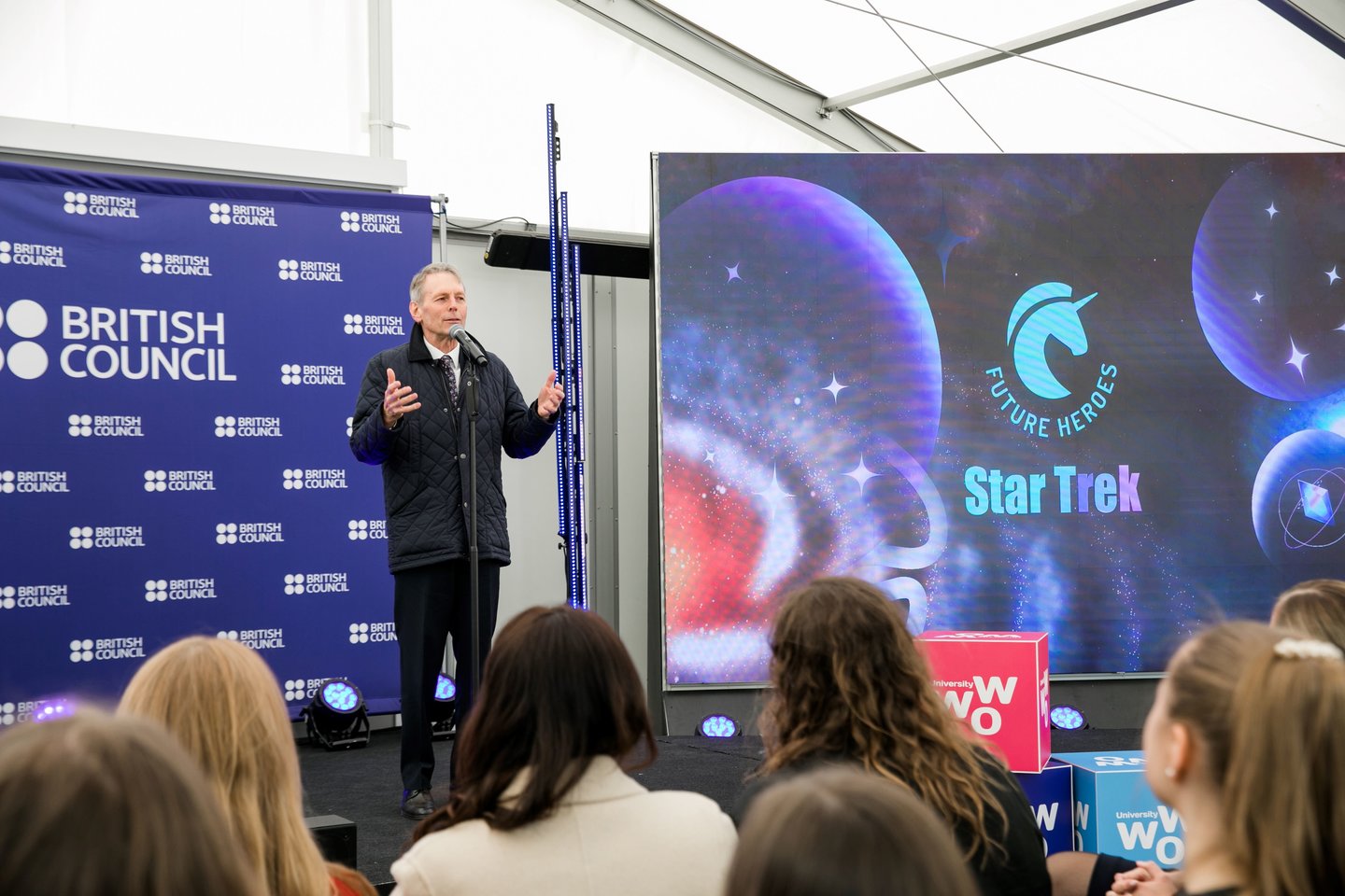 Jungtinės Karalystės ambasadorius Brianas Olley, sveikindamas susirinkusiuosius ir dėkodamas projekto organizatoriams bei rėmėjams, jaunųjų herojų prašė įsidėmėti tai, kad reikia mokėti priimti ne tik sėkmę, bet ir nesėkmę. „Nesitikėkite, kad turėdamos superherojų supergalias visada būsite viršūnėje ir jus visada lydės tik sėkmė. Turite suvokti faktą, kad kartais gali kilti ir nesėkmių. Mes visi esame patyrę ne tik sėkmės skonį, bet ir žinome, kas yra nesėkmė. Papsakosiu jums savo geriausio mokyklos draugo istoriją. Jis nieko kito nenorėjo, tik tapti profesionaliu naikintuvo pilotu. Sulaukęs 17 metų, jis išvyko į trijų dienų atranką, per kurią trys geriausieji turėjo būti atrinkti mokytis į britų oro pajėgas. Kiekvieną dieną išlikdavo tik geriausieji: po pirmos dienos liko 50, po antros – 30, o paskutinę dieną jų liko vos dešimt. Ir jis, mano draugas, buvo tarp geriausių kandidatų tapti pilotu.