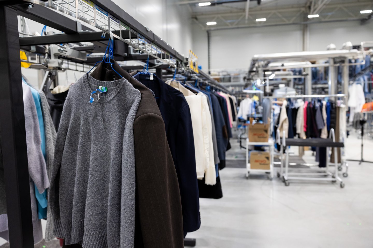 „Esame matę inovatyvių sprendimų, ir juos dabar naudojame savo gamyboje. Tai ir automatizuoti lyginimo įrengimai, ir automatinis drabužių bei visos kitos tekstilės pateikimas į valymo vietą, į kokybės kontrolės vietą, automatinis pakavimas, gabenimas į sandėlį, perdavimas logistikai.