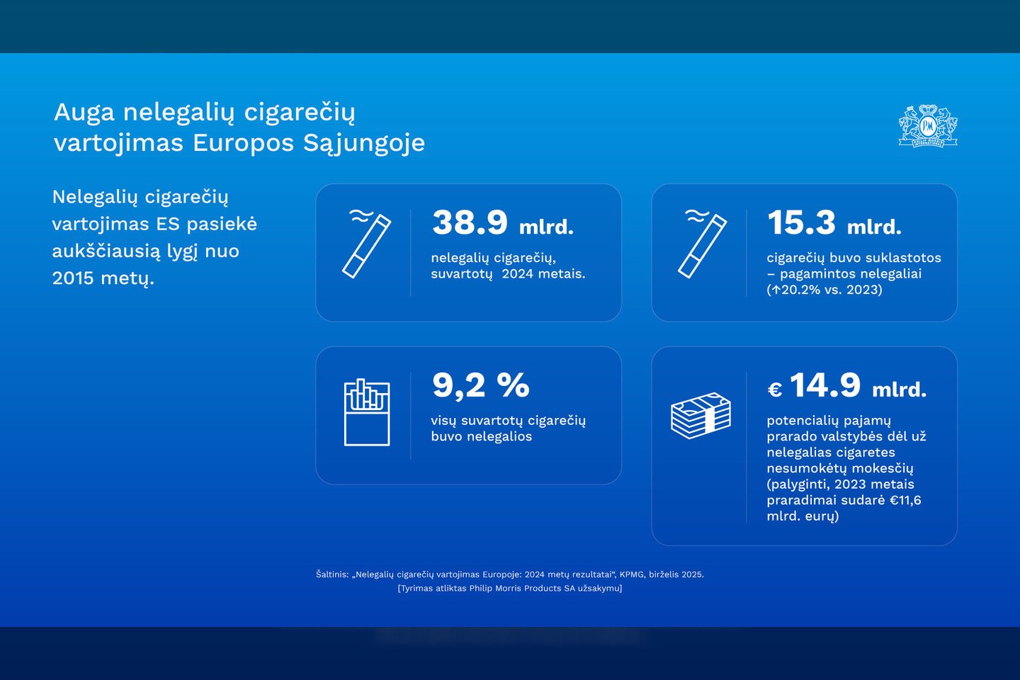 Christos Harpantidis, PMI vyresnysis viceprezidentas, atsakingas už išorės reikalus, pastebėjo, kad neteisėta prekyba tabako gaminiais kelia grėsmę Europos ekonomikai, visuomenės sveikatai, saugumui ir socialiniam stabilumui.