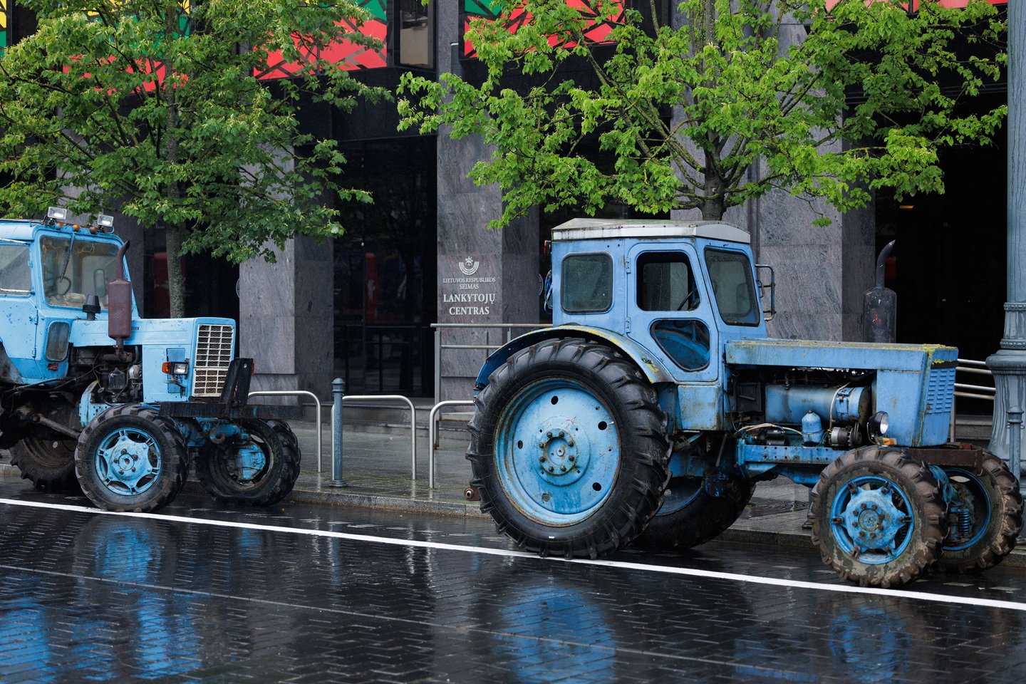 Vaizdelis Gedimino prospekte išties komiškas – išrikiuoti jau ne vieną dešimtmetį skaičiuojantys traktoriai traukė ne vieno praeivio dėmesį.