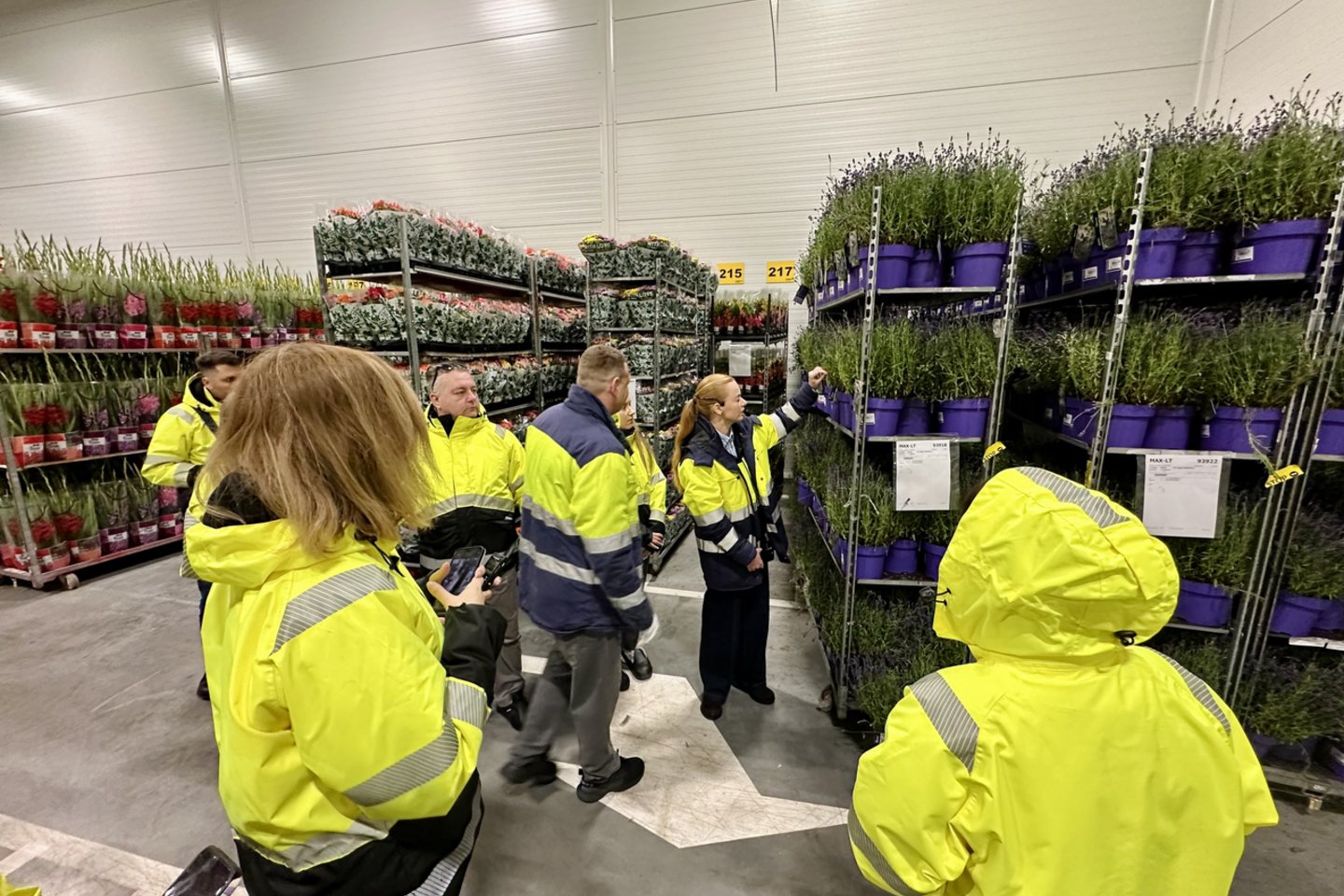Kokybės patikrą turi praeiti ne tik tai, ką įsigiję vėliau suvalgome – nuodugniai peržiūrimos ir į logistikos centrą atvežamos gėlės. Pastarųjų čia yra tiek skintų, tiek vazoninių. Vienu metu laikoma maždaug 550 gėlių transportavimo vienetų.
