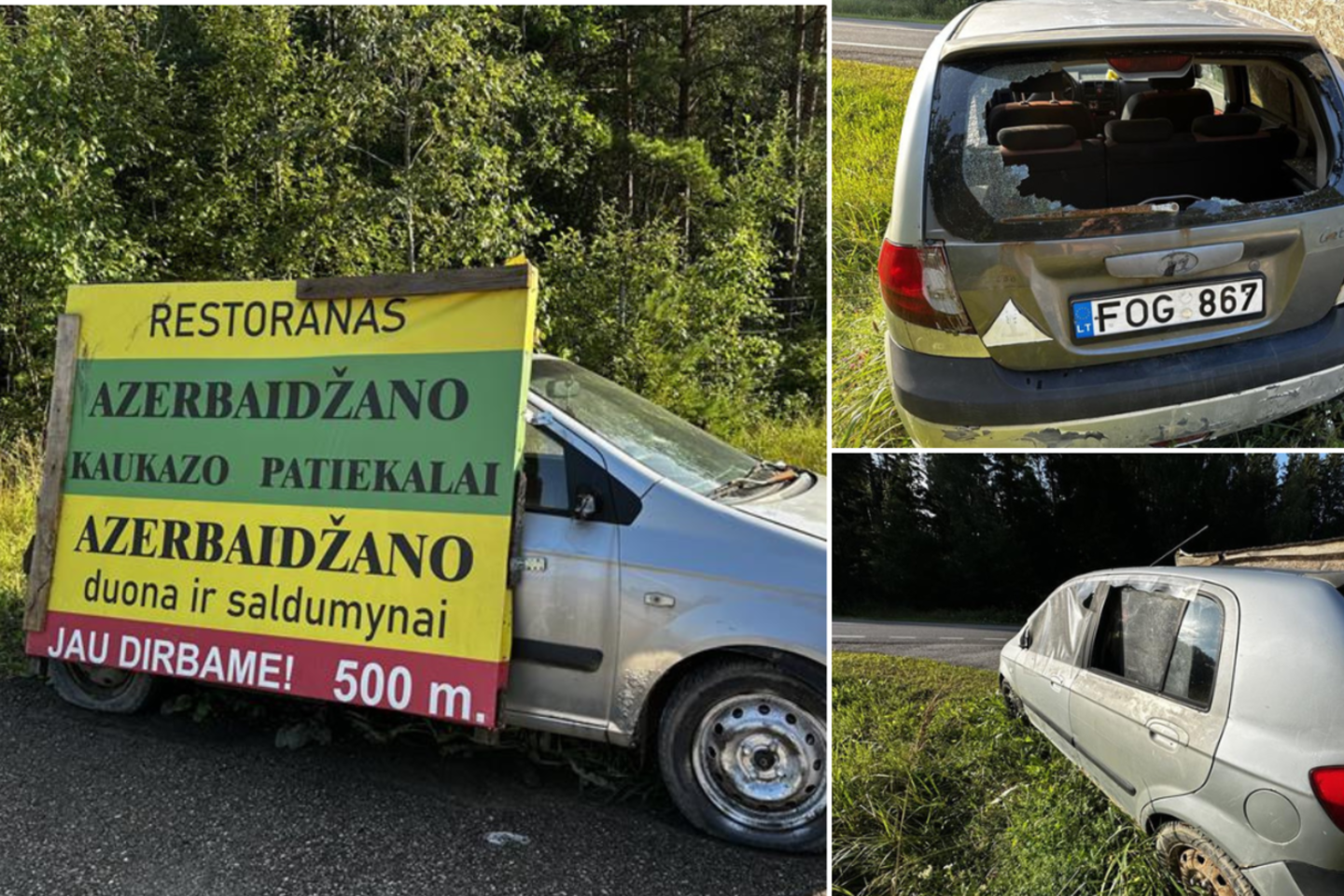 Automobilis išmuštais langais, nulaužtais veidrodėliais, o prie jo varžtais prisuktas reklaminis stendas, įspėjantis, kad už 500 m – restoranas „Azerbaidžanietiški Kaukazo patiekalai’’. Štai toks automobilis, paverstas savotišku reklamos stendu, kasdien pasitinka važiuojančius A6 keliu nuo Jonavos Ukmergės link. Tačiau toks marketinginis triukas patinka ne visiems. Pats restorano šeimininkas aiškina, kad automobilius patrauks, tačiau nesuprato, kodėl jie kažkam užkliuvo.