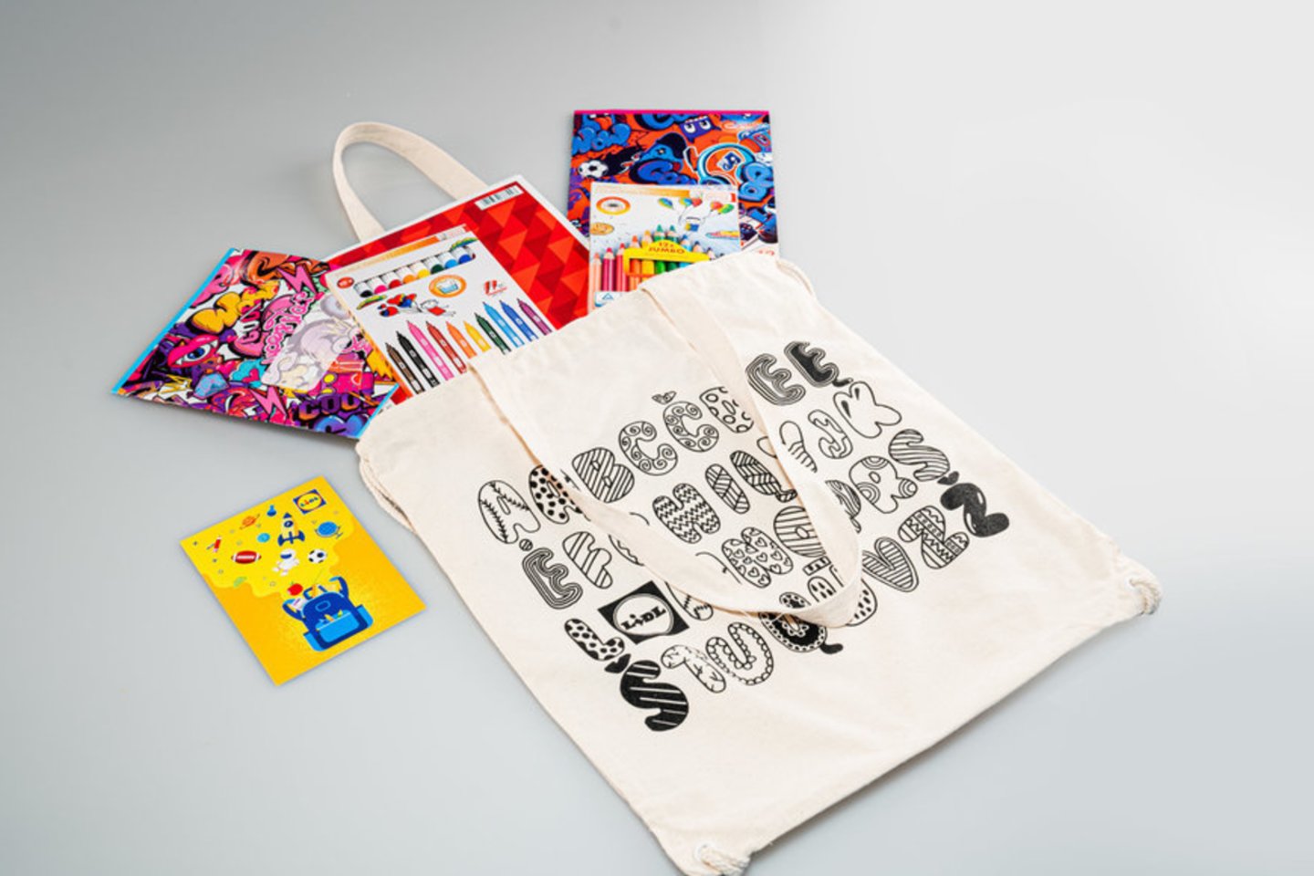 Šiemet mokyklinių dovanų krepšelį sudaro svarbiausios kanceliarinės prekės iš „Lidl“ asortimento: sąsiuviniai, flomasteriai, spalvoti pieštukai, lipnūs lapeliai ir kitos priemonės. Įmonė rūpinasi, kad darbuotojų vaikai būtų pasiruošę mokyklai bei saugūs kelyje – visos šios priemonės sudėtos į atšvaitinį maišelį su užtraukiamomis virvutėmis, kuris padės būti matomiems kelyje.