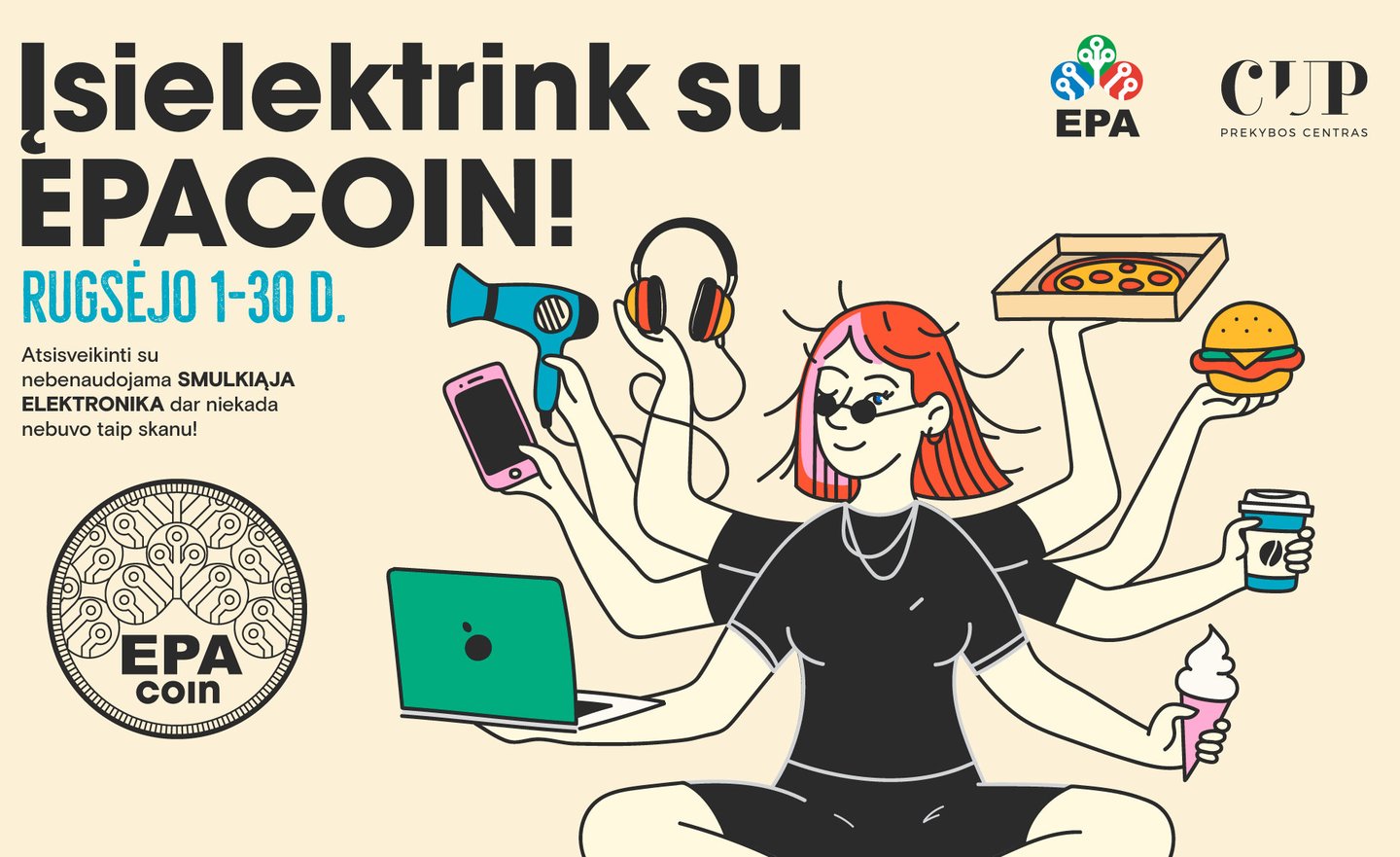 „EPAcoin“ – tai speciali atsiskaitymo priemonė, kurią gyventojai gauna už atneštą nebenaudojamą smulkiąją elektronikos atlieką. Ji galioja projekto metu ir suteikia galimybę atsiskaityti CUP prekybos centro kavinėse bei restoranuose. „Siekėme sukurti aiškų ir žaismingą būdą, kad žmogus, atnešęs namuose dulkantį prietaisą, už atsakingą elgesį gautų malonią patirtį, tai galimybę iškeisti jį į skanėstus ar gėrimus PC CUP kavinėse bei restoranuose. Galbūt taip susiburs draugai, klasės ar kolektyvai ir sukurs jaukią bendrystės akimirką. Juk tereikia paieškoti stalčiuose nebenaudojamų elektronikos prietaisų. Taip būsime ir tvaresni, ir kartu pasimėgausime mažais gyvenimo malonumais“, – sako Elektronikos platintojų asociacijos (EPA) vadovas Linas Ivanauskas.