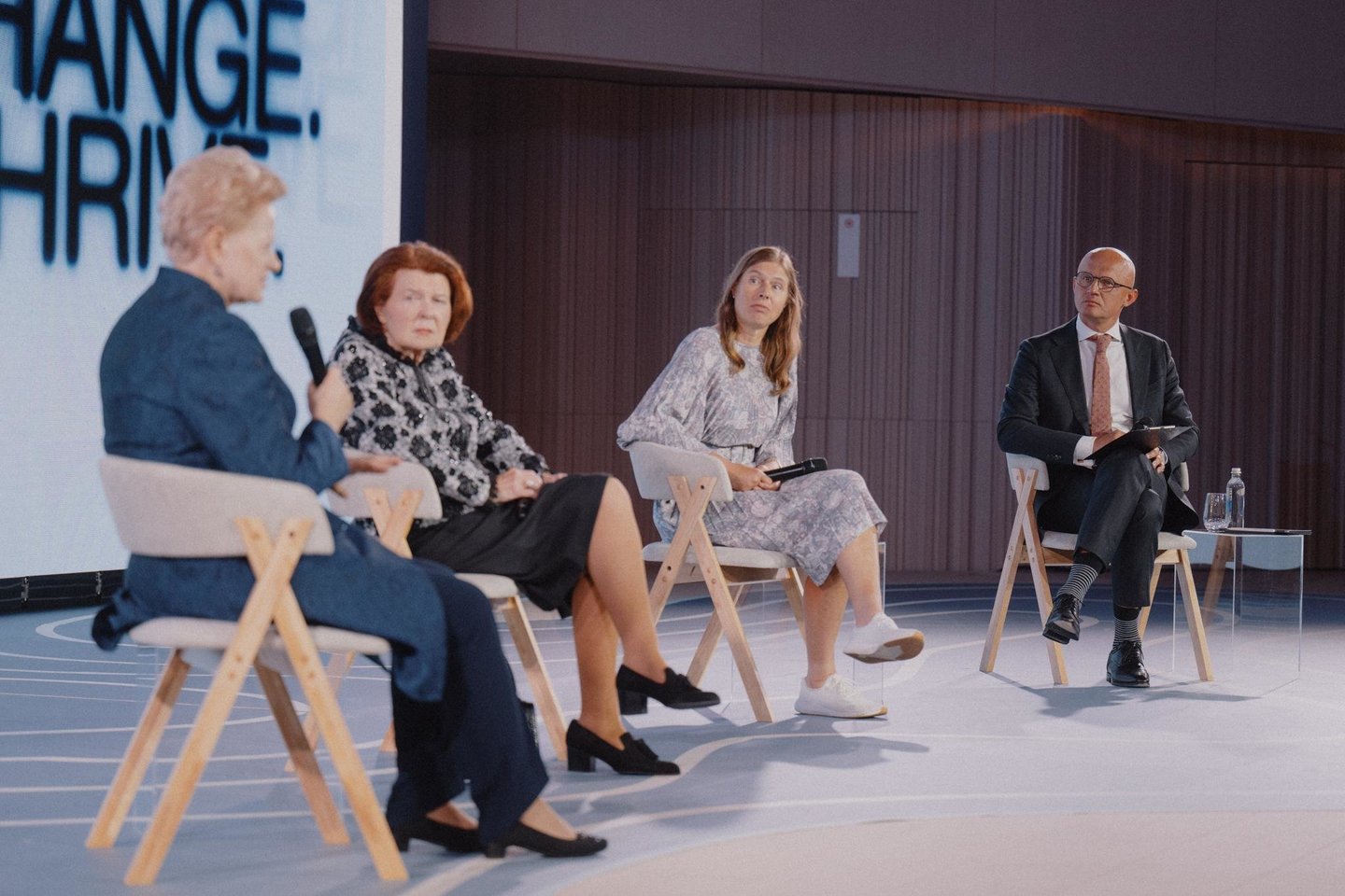 Vienos iš diskusijų „Atspari lyderystė: įžvalgos iš trijų buvusių Baltijos šalių prezidenčių“ metu buvusios regiono lyderės Dalia Grybauskaitė, Vaira Vīķe-Freiberga ir Kersti Kaljulaid dalijosi patirtimi apie tai, kaip užtikrinti valstybių saugumą, stiprinti piliečių pasitikėjimą ir telkti regiono vienybę.