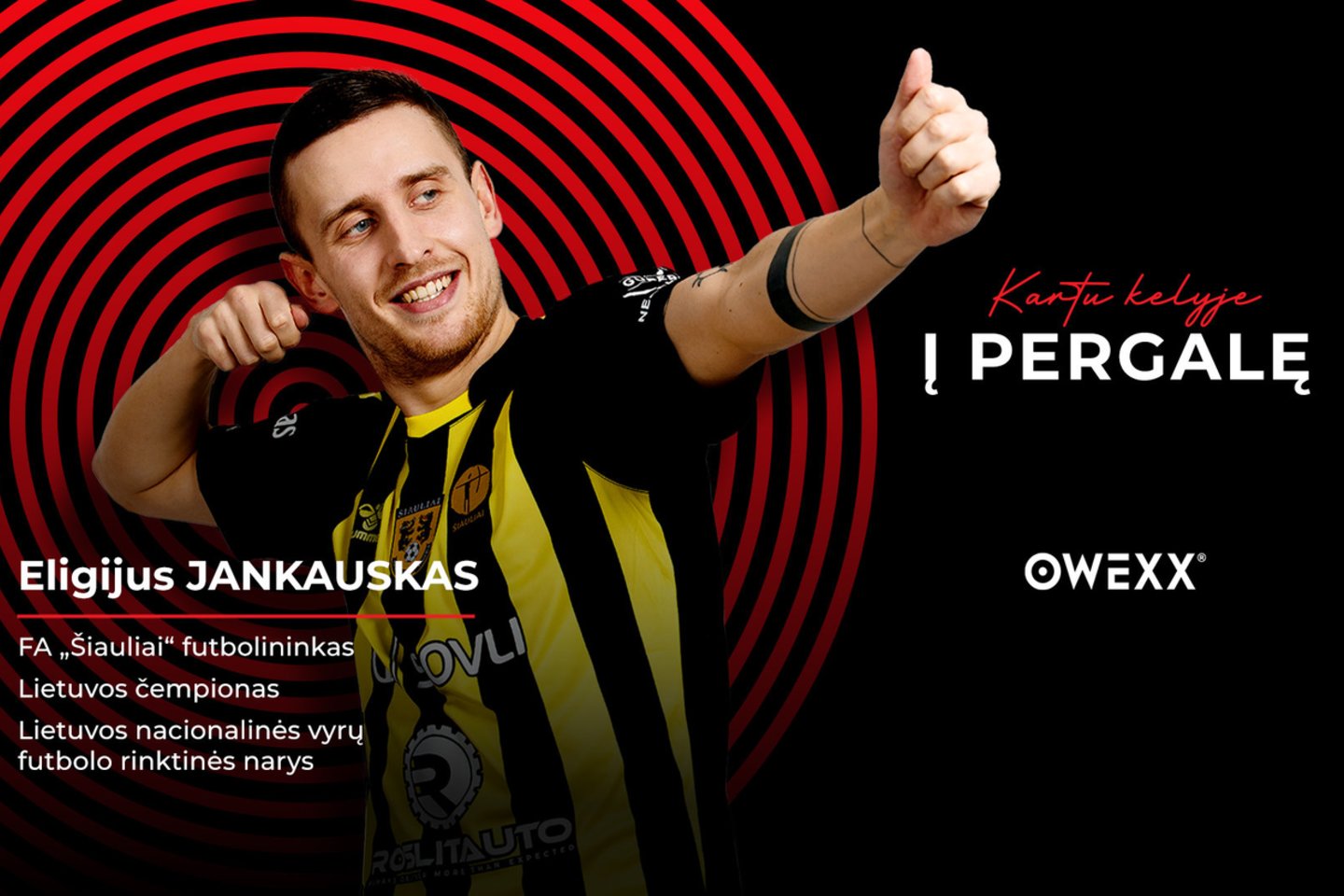OWEXX reklamos kampanijoje „Kartu kelyje į pergalę“ siekiama padėkoti sportininkams ir jų komandoms – ne tik už pergales, bet ir už šią nematomą sporto pusę, už kelią, vedantį į jas. Šįkart apie savo sporto kelią, kasdienį darbą ir pergales pasakoja FA „Šiauliai“ futbolininkas Eligijus Jankauskas ir lenktynininkas Karolis Raišys.