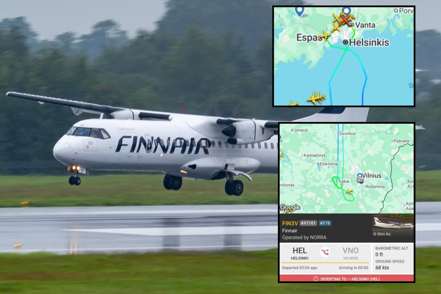 Lėktuvas, apsukęs kelis ratus virš Lietuvos sostinės, buvo nukreiptas atgal į Helsinkį.