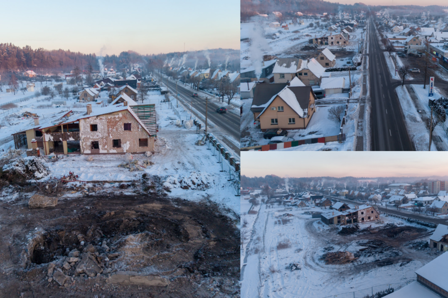 Prekybos paskirties pastatas iškils Kauno g. 53. Šią savaitę portalas „Kas vyksta Kaune“ užfiksavo pastatų griovimo darbus.
