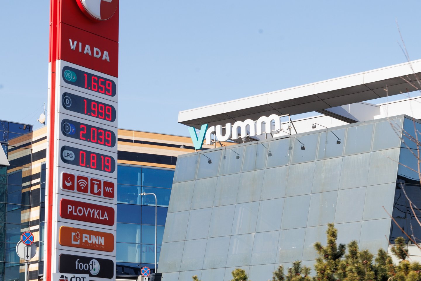 Dyzelino kaina šoktelėjo ir „Viada“ degalinėse. Vilniuje, netoli prekybos centro „Panorama“ esančios šio tinklo degalinės švieslentėje matyti, kad dyzelio (su priedais) kaina jau peršoko 2 Eur/l kartelę, o paprastas dyzelinas dar laikosi ties 1,99 Eur riba.