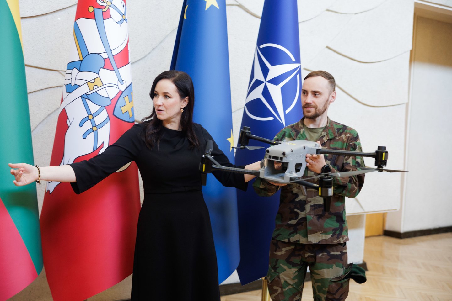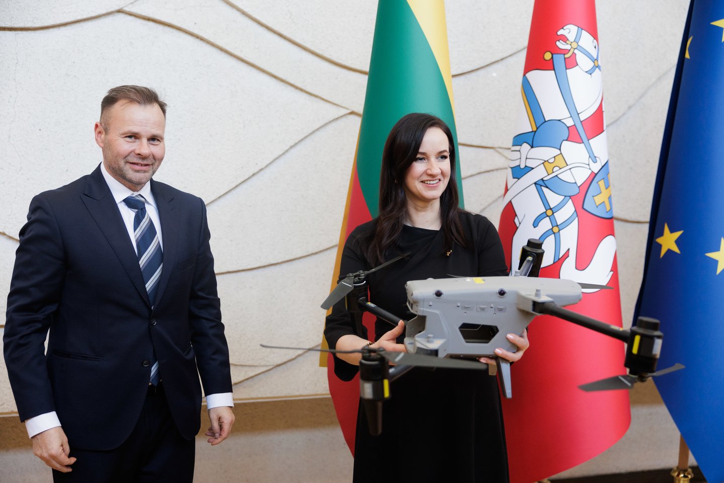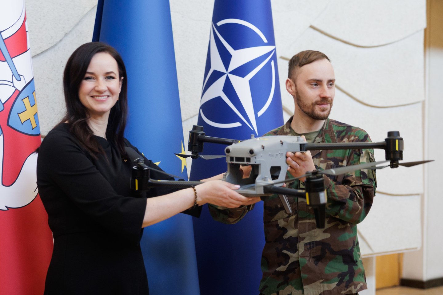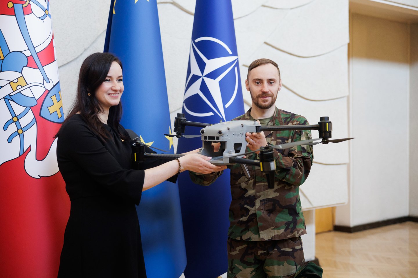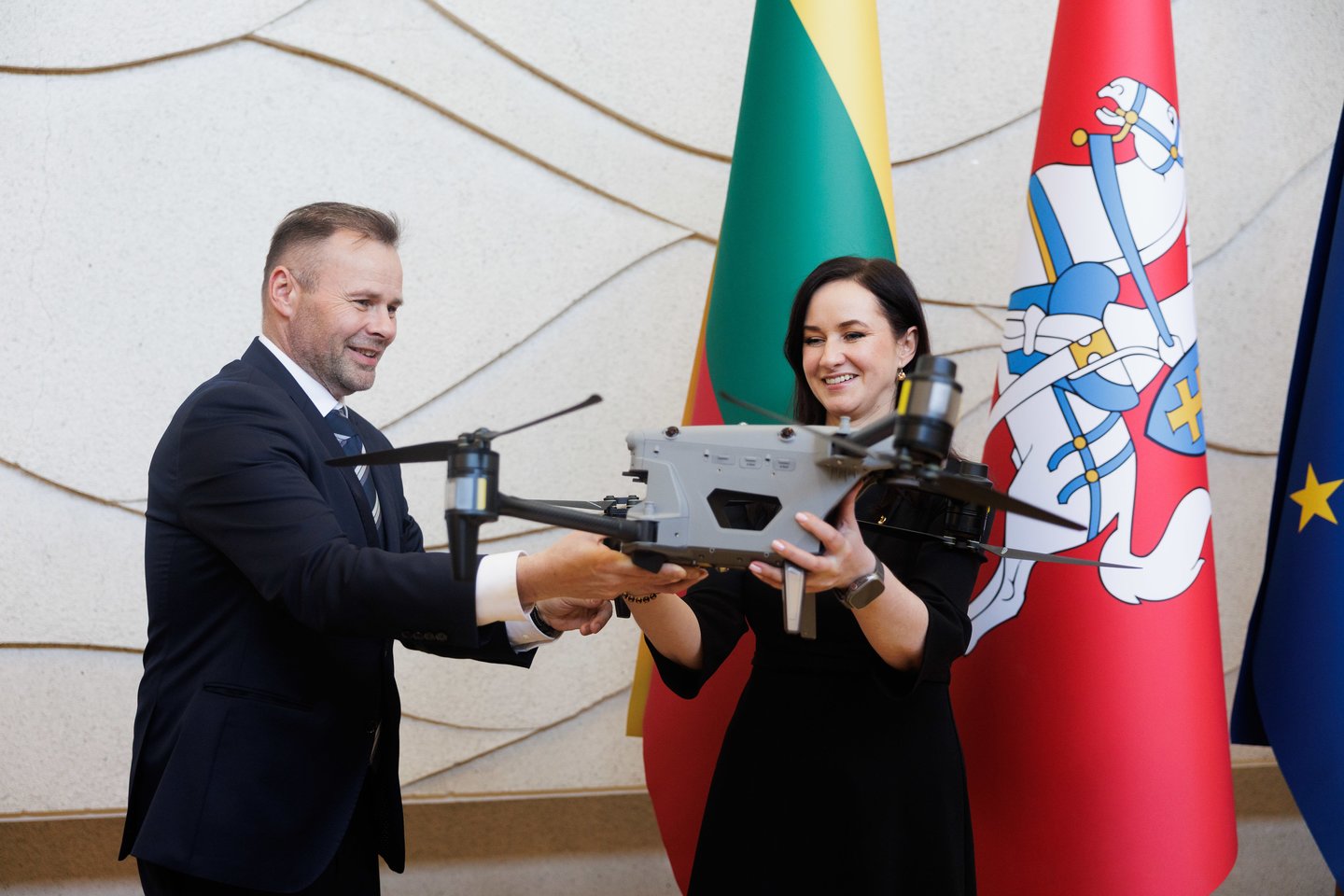 Pirmadienį, kovo 16 d., Vyriausybėje įmonės „Philip Morris International“ Šiaurės ir Rytų Europos regiono viceprezidentas Michalas Mierzejewskis ministrei pirmininkei Ingai Ruginienei simboliškai perdavė dronus, skirtus kovai su kontrabanda ir hibridinėmis grėsmėmis Lietuvos pasienyje. Po oficialaus perdavimo Lietuvos šaulių sąjunga (LŠS) Vinco Kudirkos aikštėje demonstravo šių dronų veikimo galimybes. Tikimasi, kad bepiločiai orlaiviai padės efektyviau stebėti, kur nusileidžia nelegalias cigaretes gabenantys balionai.